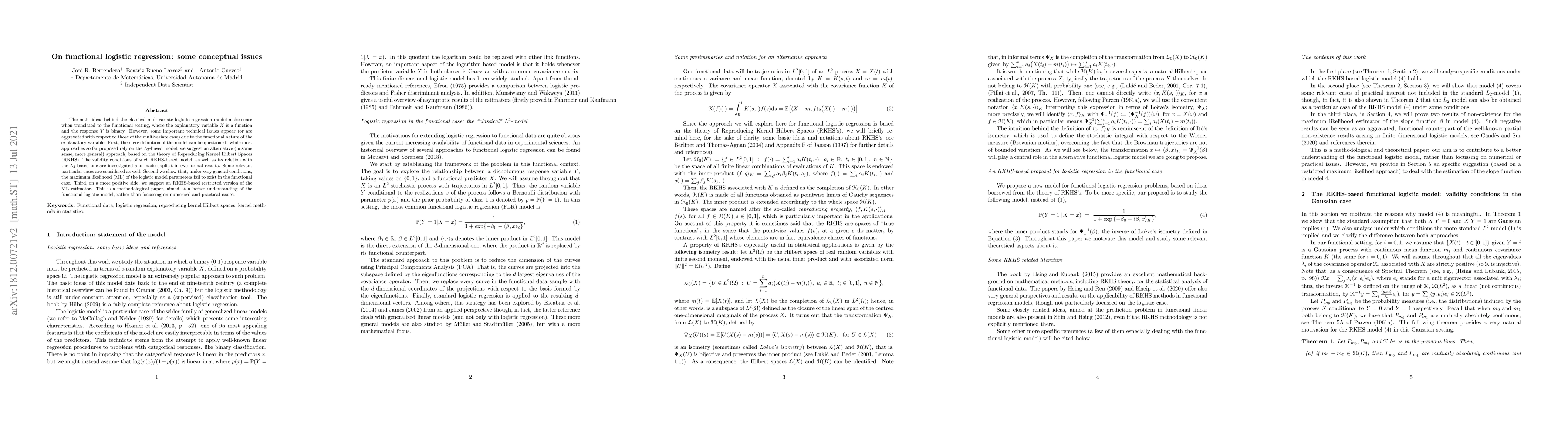The main ideas behind the classical multivariate logistic regression model make sense when translated to the functional setting, where the explanatory variable $X$ is a function and the response $Y$ is binary. However, some important technical issues appear (or are aggravated with respect to those of the multivariate case) due to the functional nature of the explanatory variable. First, the mere definition of the model can be questioned: while most approaches so far proposed rely on the $L_2$-based model, we suggest an alternative (in some sense, more general) approach, based on the theory of Reproducing Kernel Hilbert Spaces (RKHS). The validity conditions of such RKHS-based model, as well as its relation with the $L_2$-based one are investigated and made explicit in two formal results. Some relevant particular cases are considered as well. Second we show that, under very general conditions, the maximum likelihood (ML) of the logistic model parameters fail to exist in the functional case. Third, on a more positive side, we suggest an RKHS-based restricted version of the ML estimator. This is a methodological paper, aimed at a better understanding of the functional logistic model, rather than focusing on numerical and practical issues.