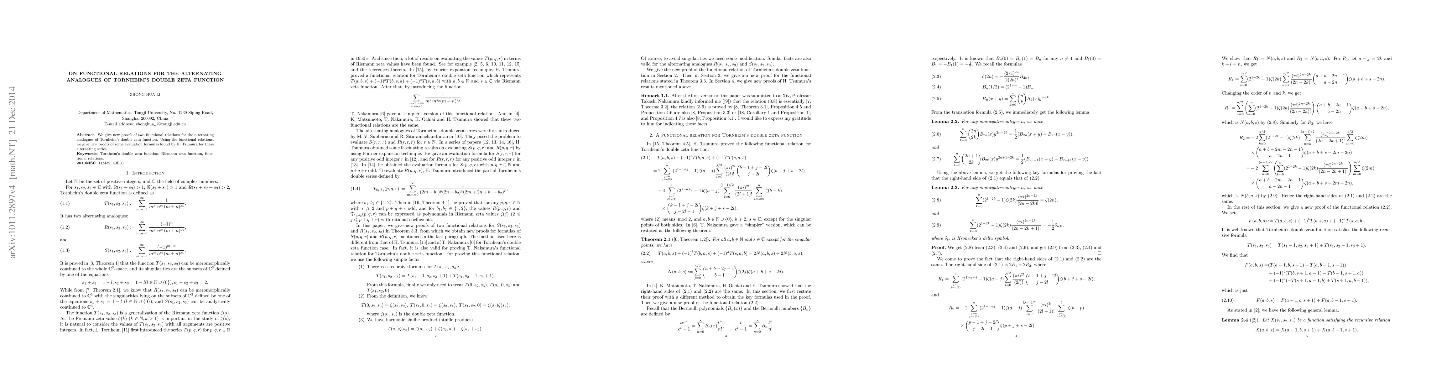 Researchers prove new functional relations for alternating analogues of Tornheim's double zeta function, providing new insights into the series.