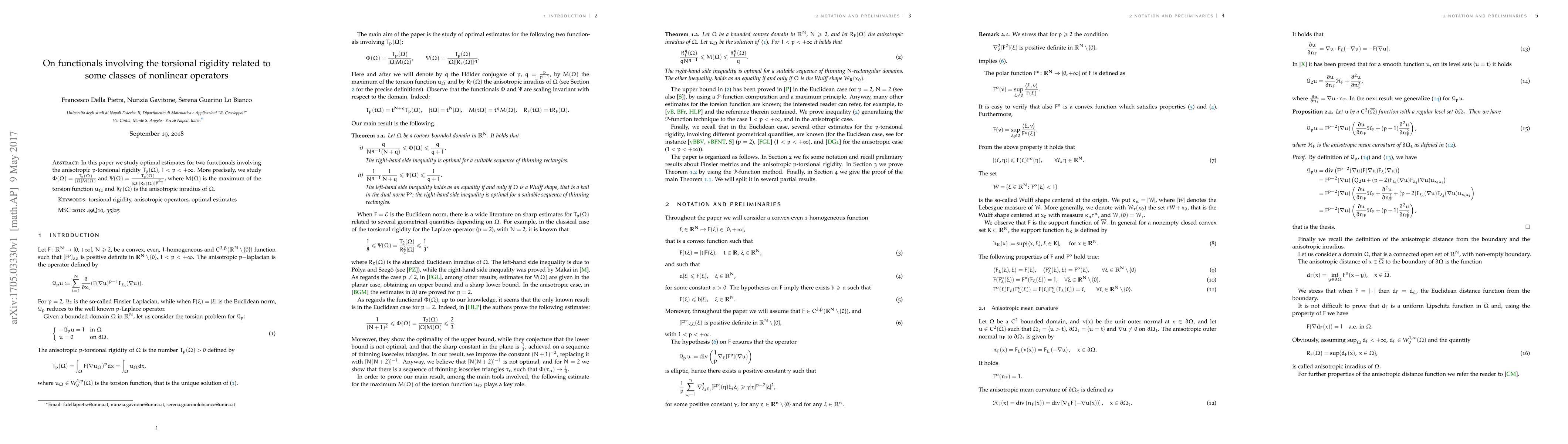 In this paper we study optimal estimates for two functionals involving the anisotropic $p$-torsional rigidity $T_p(\Omega)$, $1