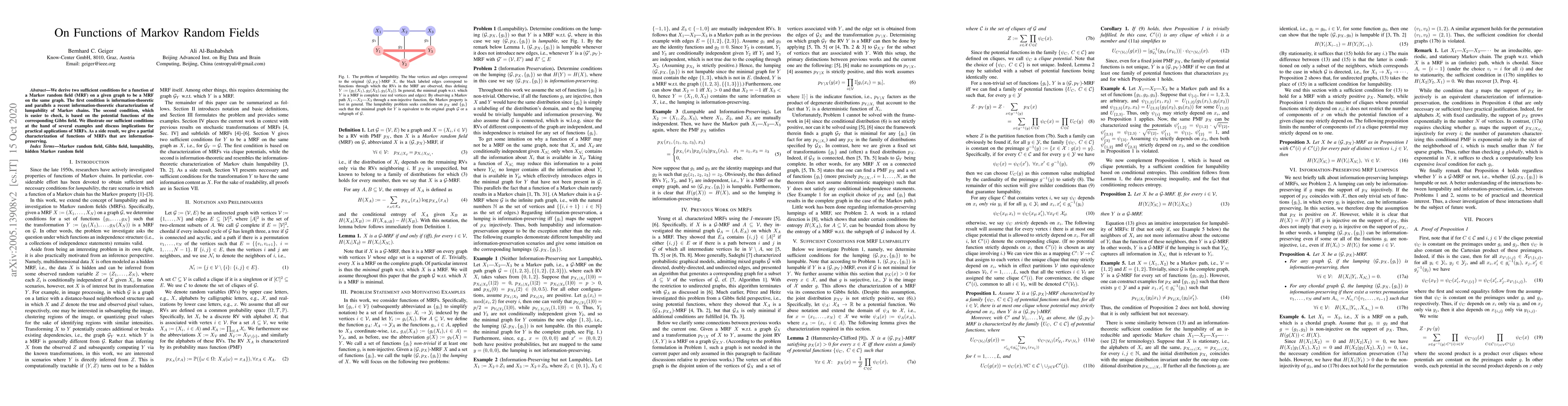 We derive two sufficient conditions for a function of a Markov random field (MRF) on a given graph to be a MRF on the same graph. The first condition is information-theoretic and parallels a recent information-theoretic characterization of lumpability of Markov chains. The second condition, which is easier to check, is based on the potential functions of the corresponding Gibbs field. We illustrate our sufficient conditions at the hand of several examples and discuss implications for practical applications of MRFs. As a side result, we give a partial characterization of functions of MRFs that are information-preserving.