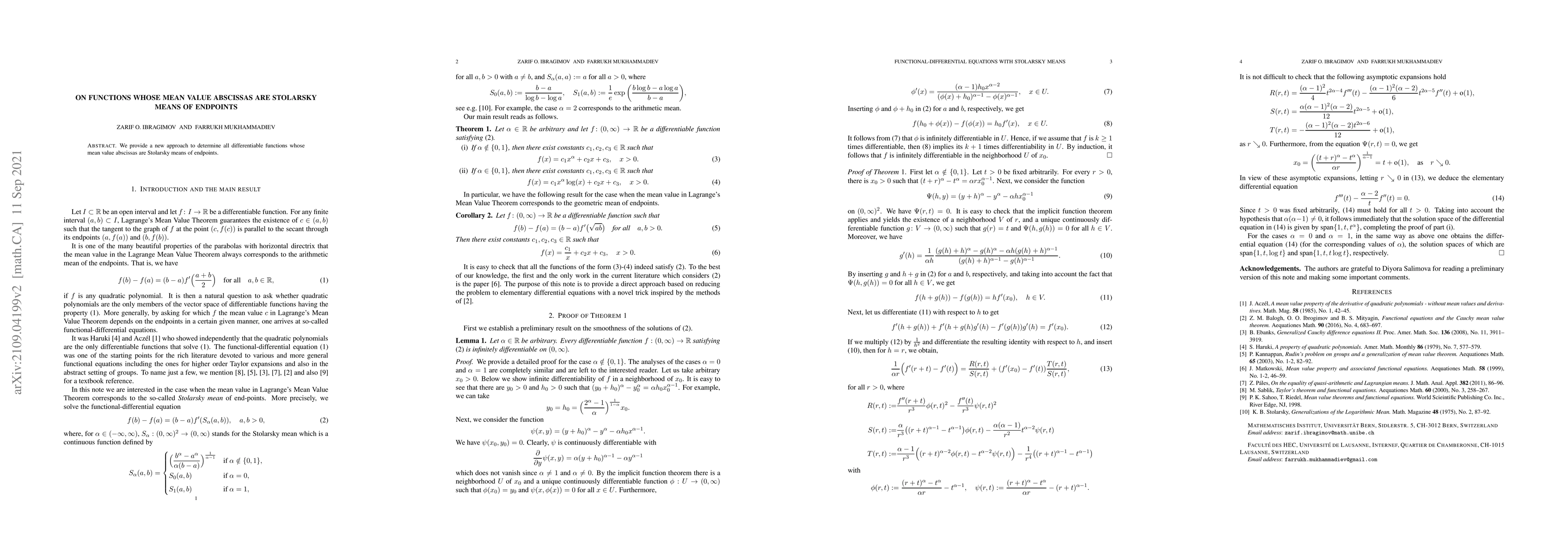 Summary: This paper introduces a novel method to identify differentiable functions where the mean value abscissas correspond to Stolarsky means of the endpoints, offering new insights into functional analysis.
