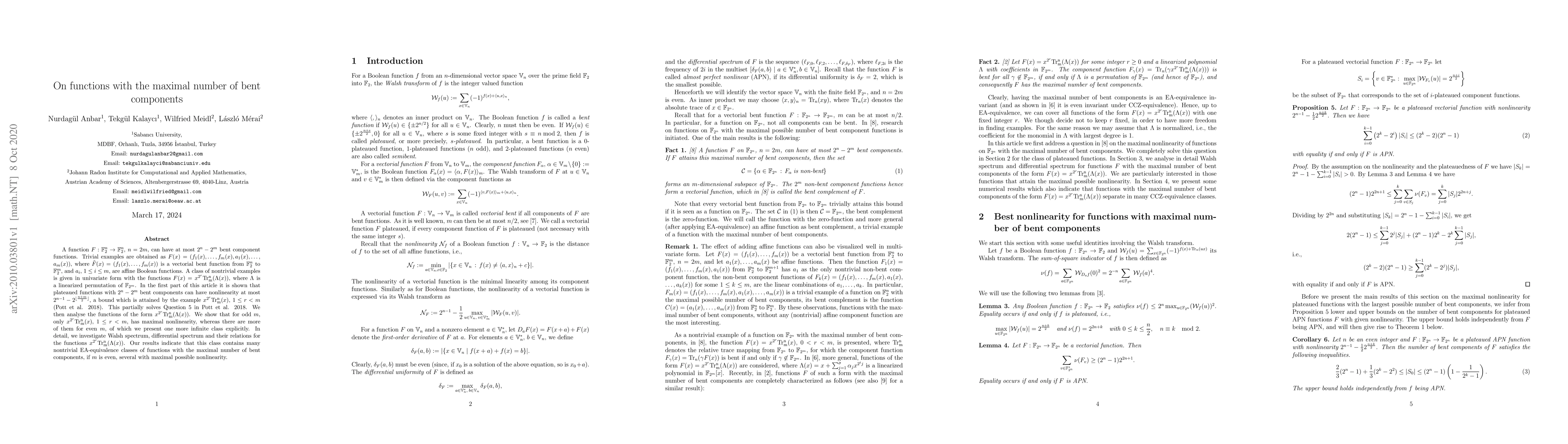 most $2^n-2^m$ bent component functions. Trivial examples are obtained as $F(x)