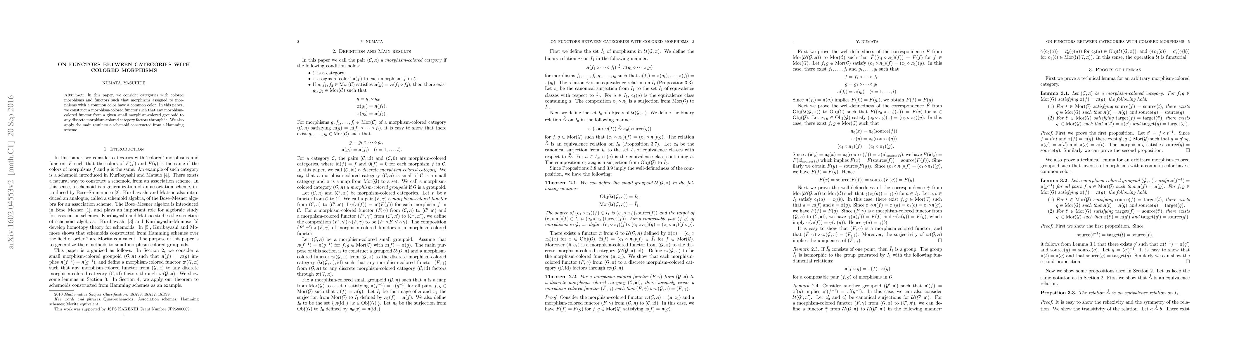 This paper explores functors that preserve the color of morphisms in categories with colored morphisms, constructing a universal morphism-colored functor for specific groupoids and categories, and applies the findings to a schemoid derived from a Hamming scheme.