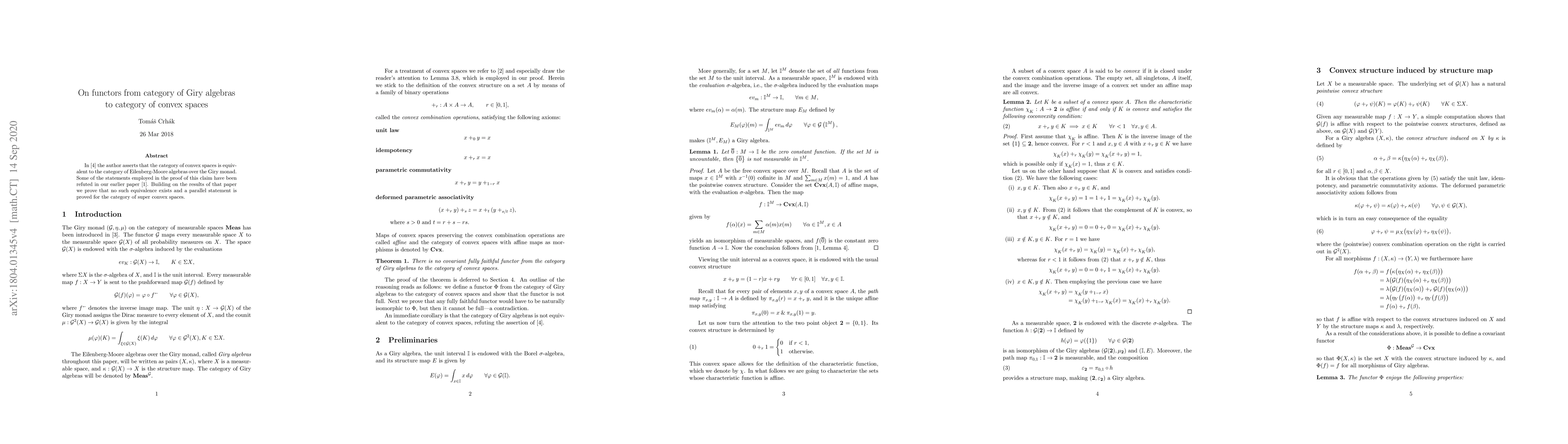 This paper refutes the claim from a previous work that the category of convex spaces is equivalent to Eilenberg-Moore algebras over the Giry monad, using results from an earlier paper. It establishes that no such equivalence exists and similarly disproves a parallel statement for super convex spaces.
