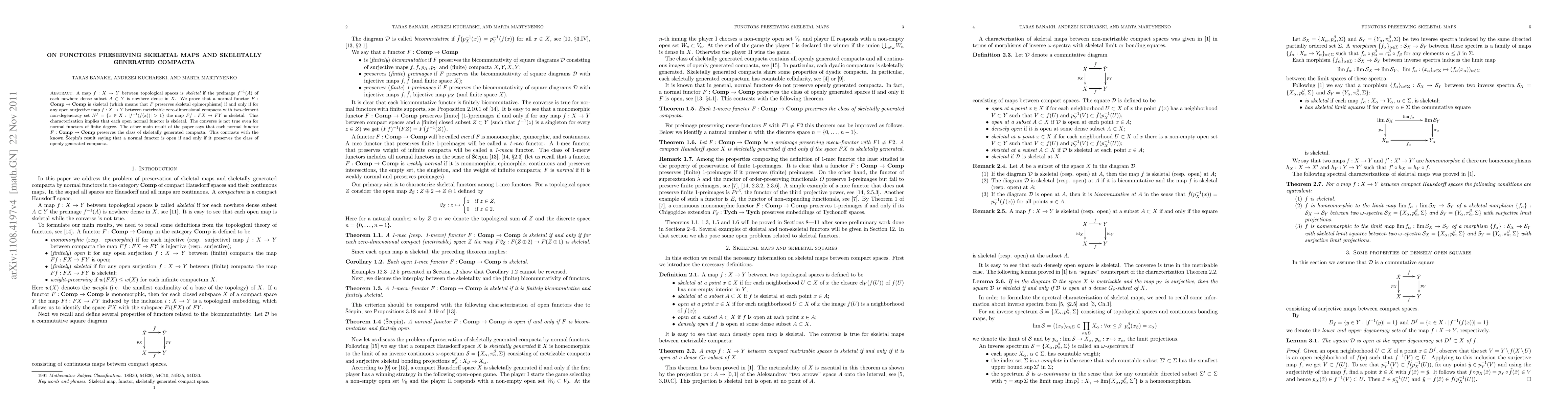 A research paper establishes a characterization for normal functors preserving skeletal maps between zero-dimensional compacta, showing they also preserve skeletally generated compacta, contrasting with previous results.