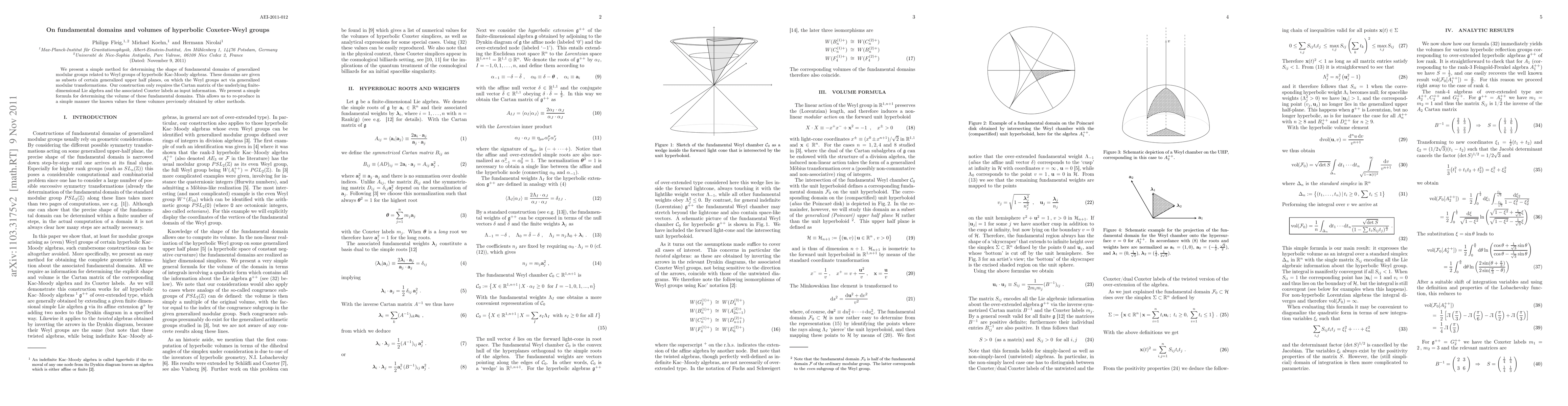 This paper proposes a straightforward method for determining the shape and volume of fundamental domains for hyperbolic Coxeter-Weyl groups using their Cartan matrix and Coxeter labels. It provides a formula to compute the volume, reproducing previously obtained results with ease.