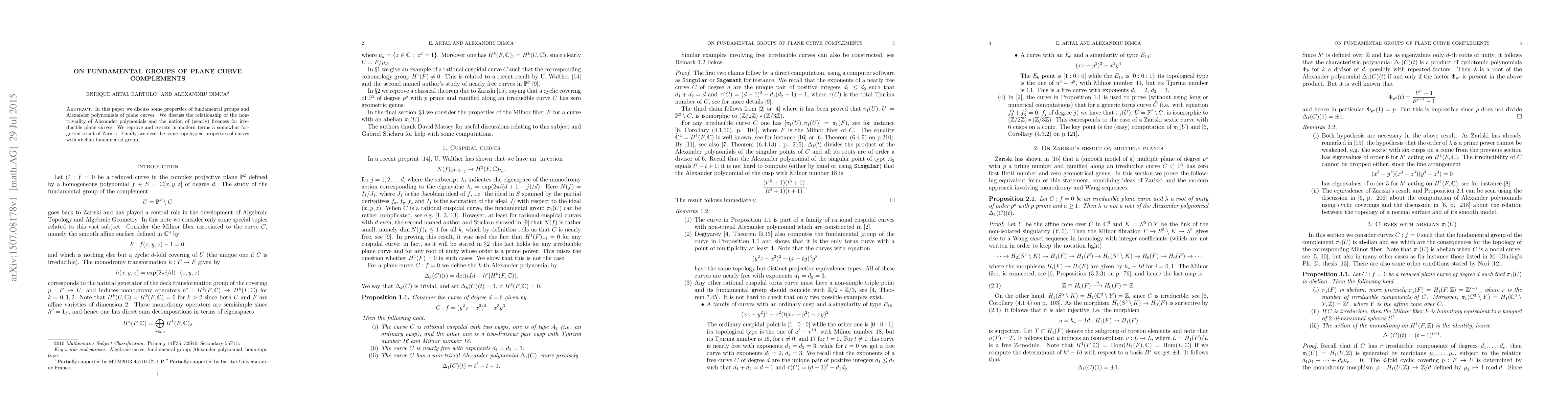 This paper explores the fundamental groups and Alexander polynomials of plane curves, linking the non-triviality of Alexander polynomials to the (nearly) freeness of irreducible plane curves, and describes topological properties of curves with abelian fundamental groups. It also revisits a classic result by Zariski in contemporary mathematical language.