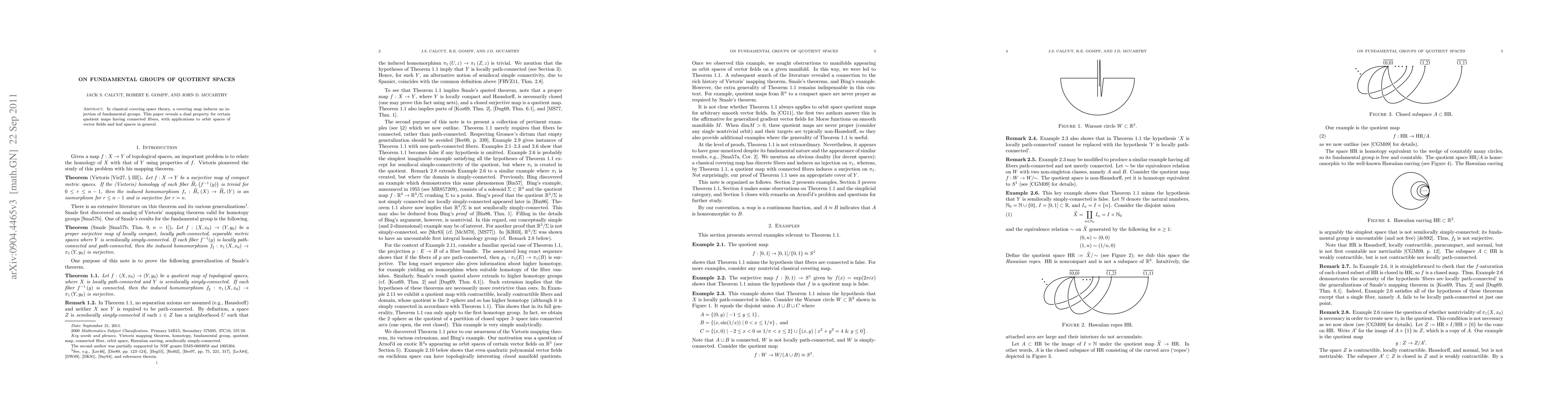 This paper explores how quotient maps with connected fibers induce a surjection on fundamental groups, contrasting with the injection induced by covering maps. It applies this dual property to the study of orbit spaces and leaf spaces in the context of vector fields.