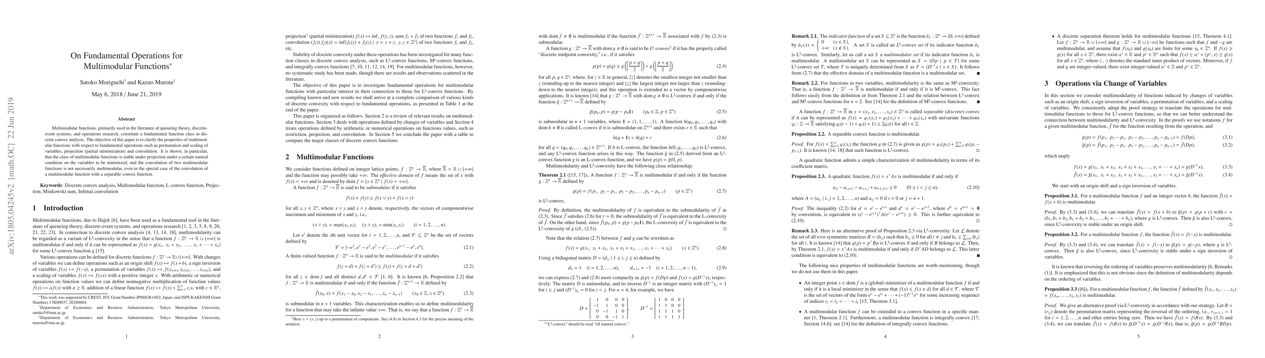 This paper explores the properties of multimodular functions under various fundamental operations, demonstrating that they remain stable under projection under specific conditions, while their convolution does not necessarily retain the multimodular property, even when combined with separable convex functions.