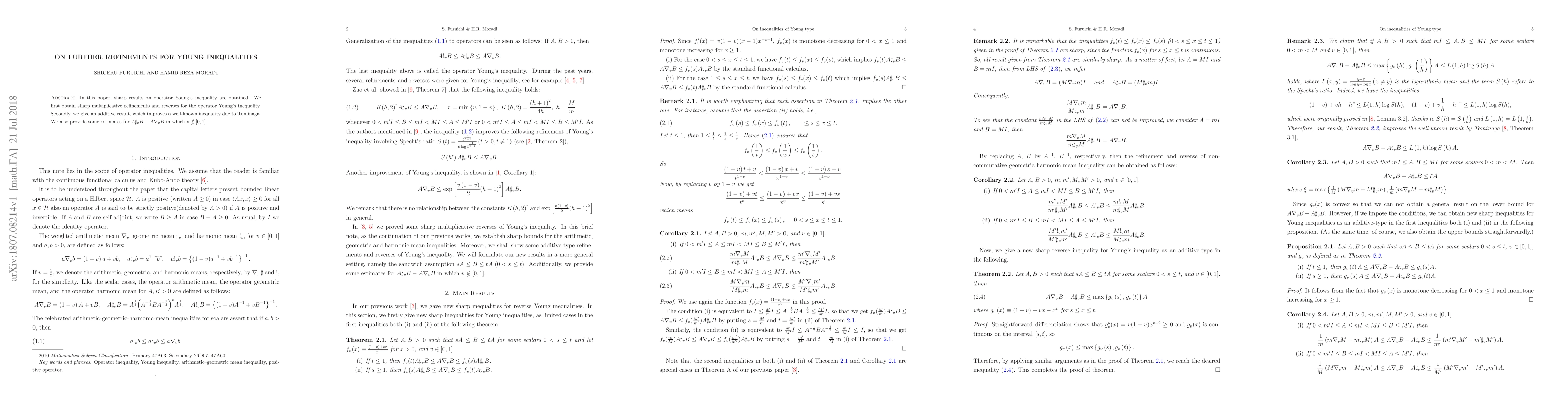 This paper refines operator Young's inequality by obtaining sharp multiplicative refinements and reverses, and provides an additive improvement over Tominaga's well-known inequality. It also estimates $A{{\sharp}_{v}}B-A{{\nabla}_{v}}B$ for $v\notin [0,1]$.