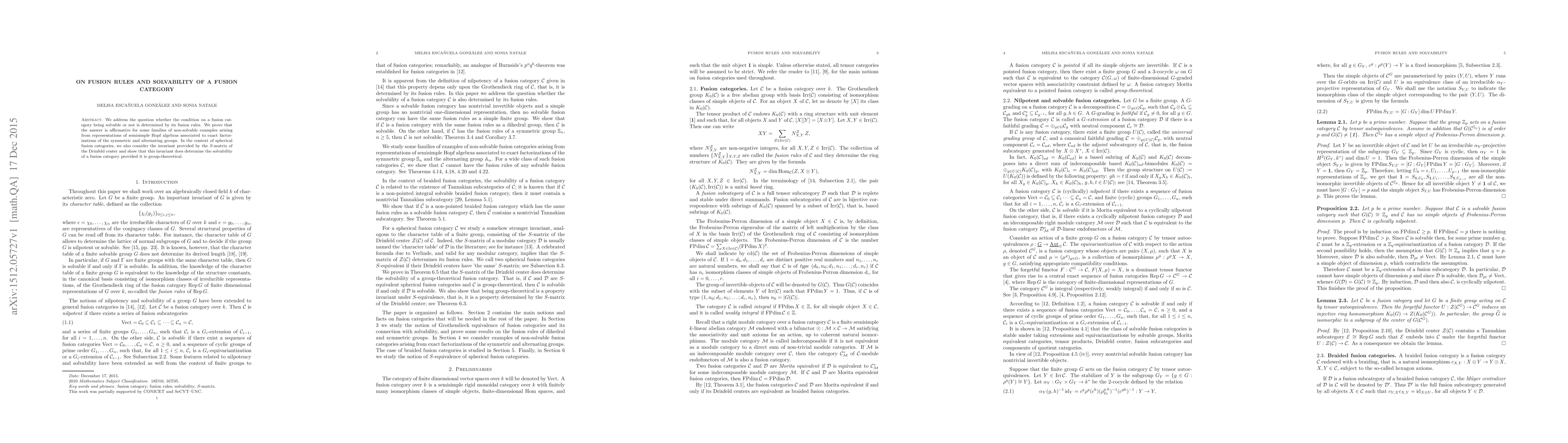 Researchers prove that fusion rules determine solvability of fusion categories, providing group-theoretical invariant for some non-solvable examples.