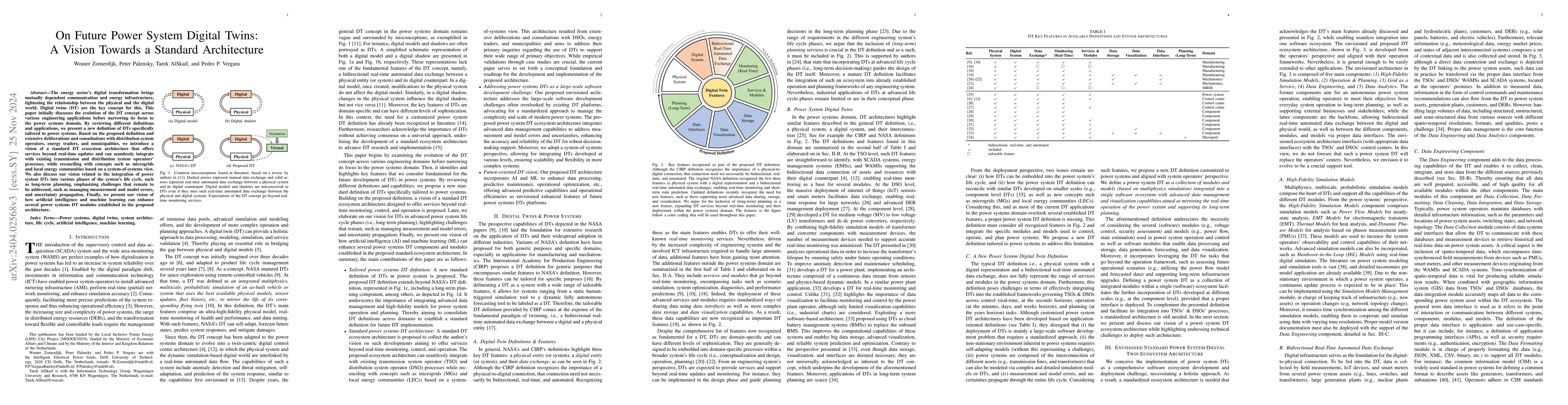 This paper discusses the evolution of digital twins (DT) in power systems, proposing a new definition tailored specifically for this sector. It introduces a standard DT ecosystem architecture aimed at integrating seamlessly with existing infrastructure, addressing challenges like error management, and envisions the use of AI and ML to enhance DT functionalities.