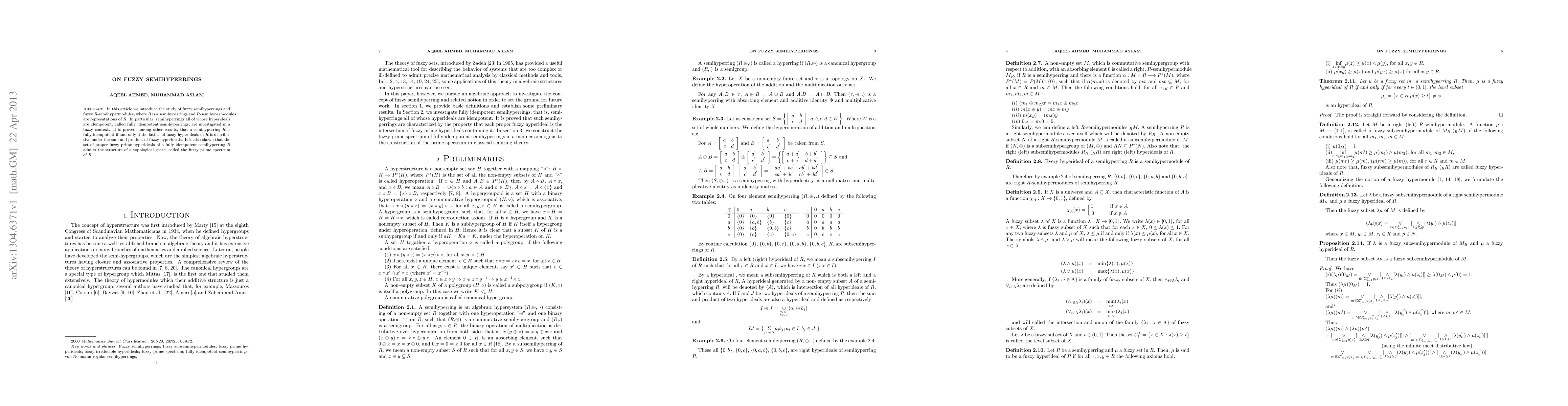 The paper introduces the concept of fuzzy semihyperrings and fuzzy R-semihypermodules, proves key theorems regarding fully idempotent semihyperrings, and establishes a topological structure on the set of proper fuzzy prime hyperideals.