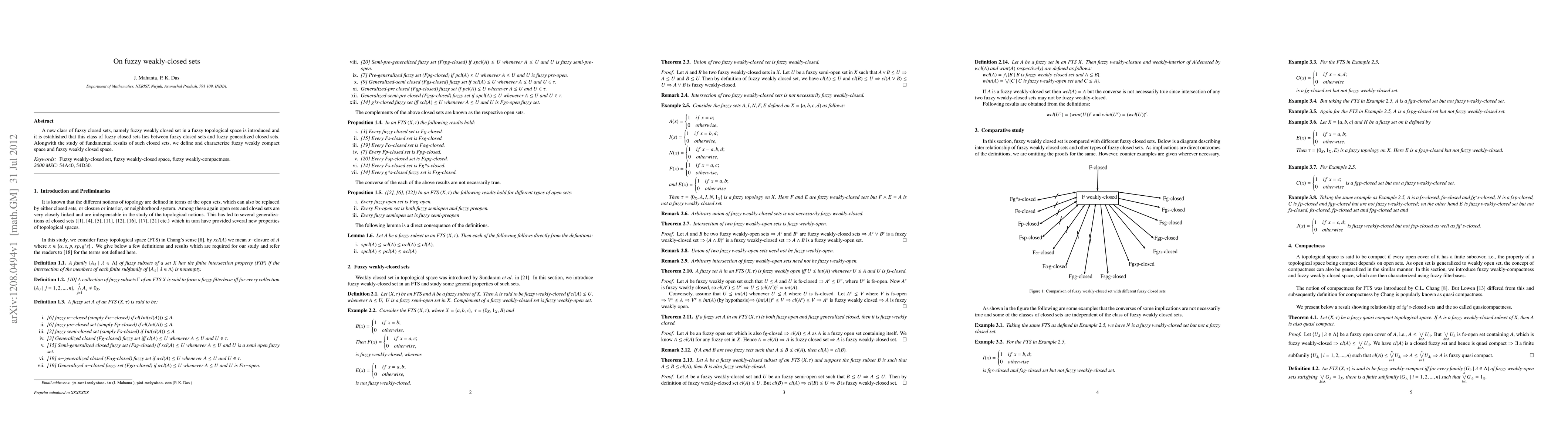 Summary: This paper introduces fuzzy weakly closed sets in fuzzy topological spaces, positioning them between fuzzy closed and fuzzy generalized closed sets. It also defines and characterizes fuzzy weakly compact and fuzzy weakly closed spaces.
