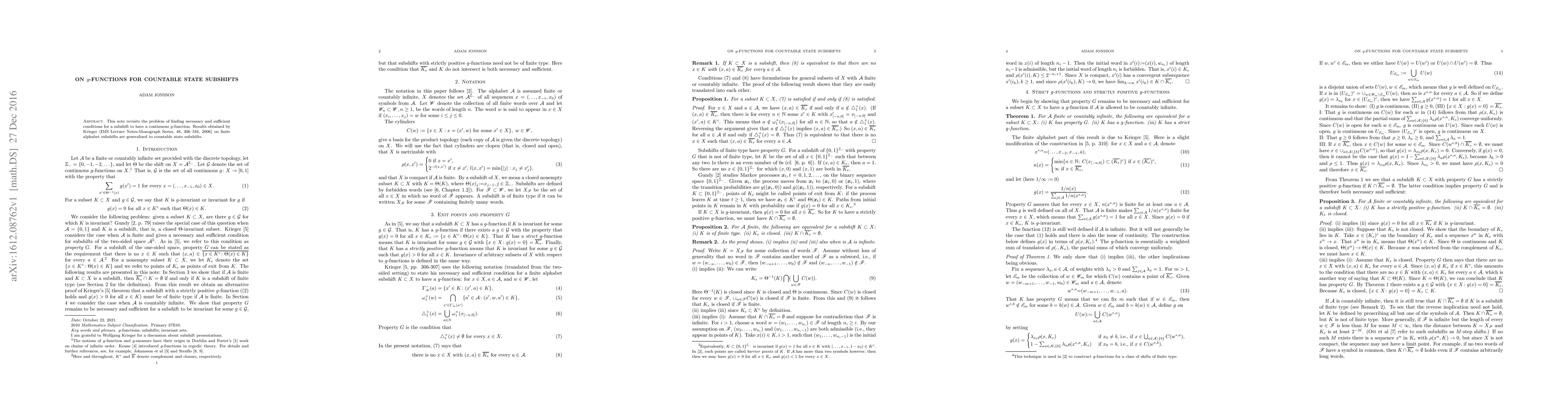 This note revisits the problem of finding necessary and sufficient conditions for a subshift to have a continuous g-function. Results obtained by Krieger (IMS Lecture Notes-Monograph Series, 48, 306--316, 2006) on finite alphabet subshifts are generalized to countable state subshifts.