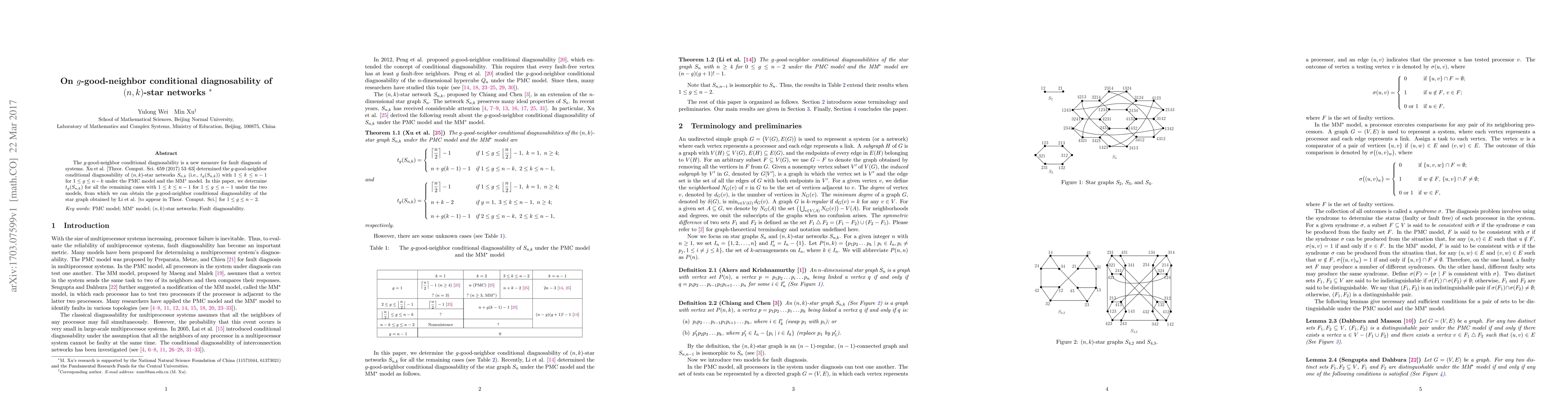 This paper completes the determination of $g$-good-neighbor conditional diagnosability for $(n, k)$-star networks under PMC and MM$^*$ models, filling gaps in previous work by Xu et al. It provides the measure $t_g(S_{n, k})$ for all remaining cases.