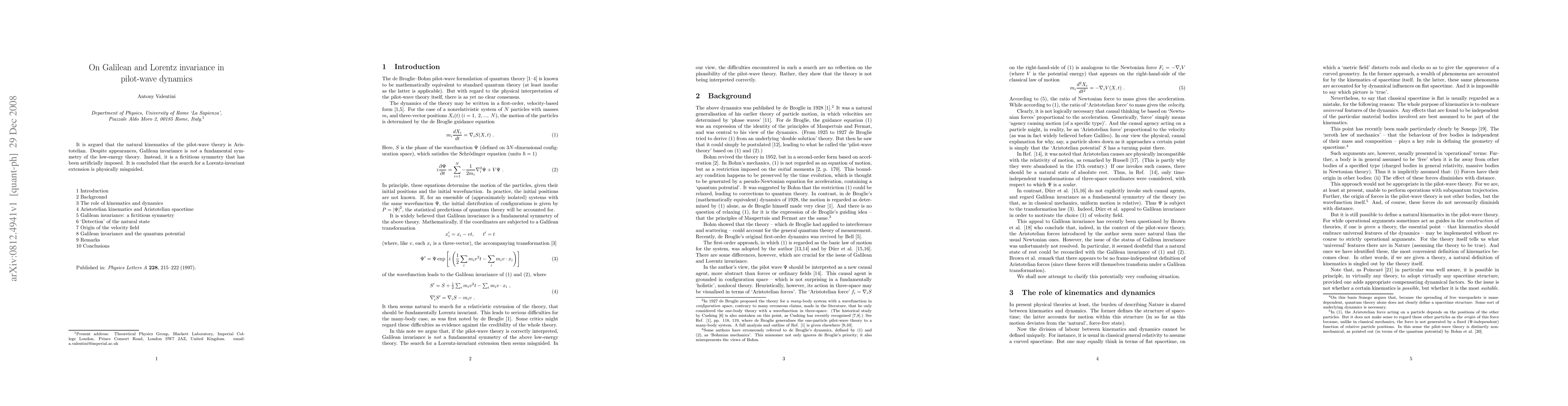 The paper argues that pilot-wave theory is Aristotelian in its natural kinematics, rejecting Lorentz-invariance as a fundamental symmetry, instead seeing it as a fictitious imposed by low-energy approximations.