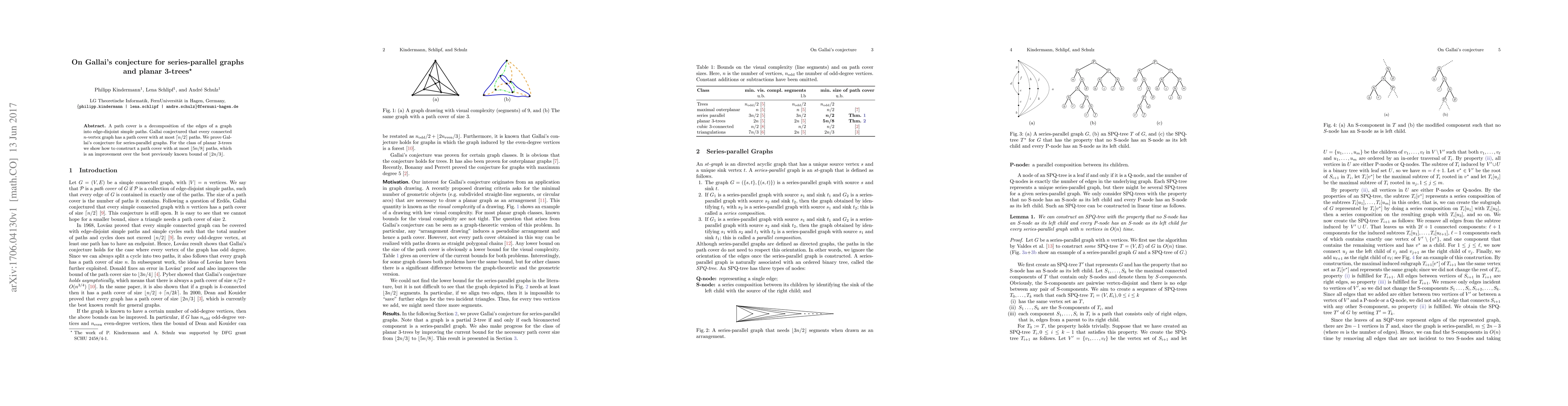 Research proves Gallai's conjecture for series-parallel graphs, showing a path cover with at most ⌊ n/2 ⌋ paths, and improves the bound for planar 3-trees to at most ⍨ 5n/8 ⍩ paths.