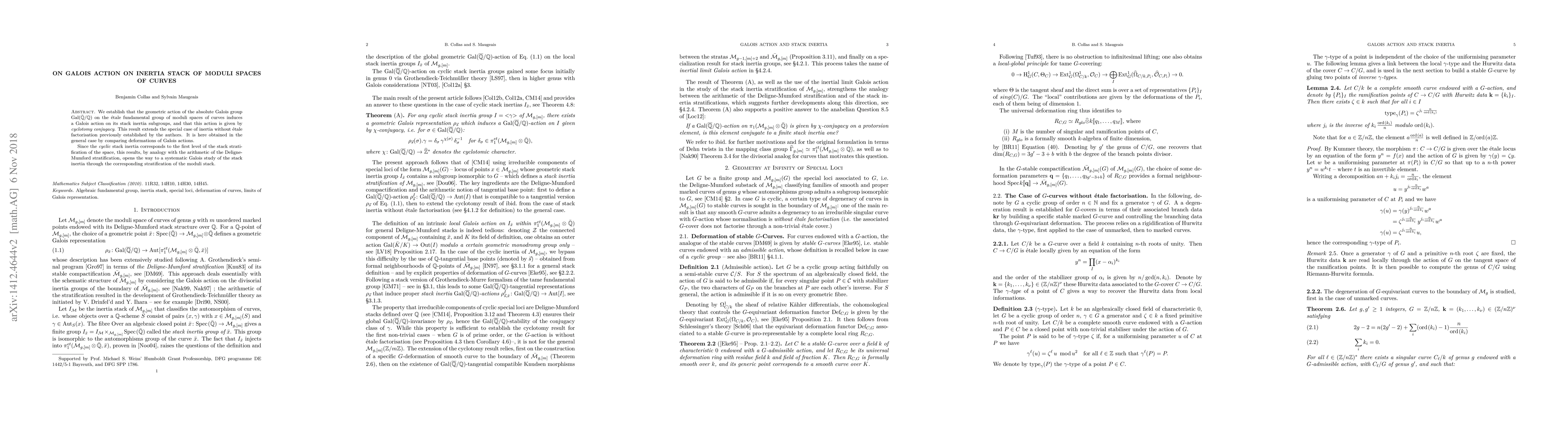 This paper demonstrates that the Galois group's action on the étale fundamental group of moduli spaces of curves induces a Galois action on stack inertia subgroups via cyclotomy conjugacy, extending previous results. This opens avenues for a systematic Galois study of the stack inertia through its stratification.