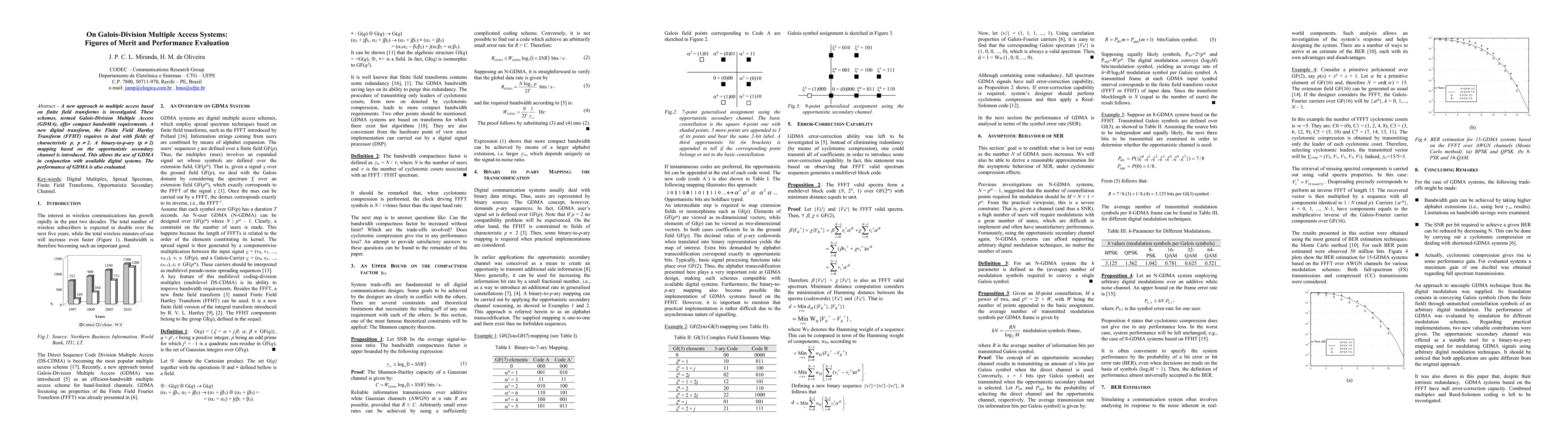 A new approach to multiple access based on finite field transforms is investigated. These schemes, termed Galois-Division Multiple Access (GDMA), offer compact bandwidth requirements. A new digital transform, the Finite Field Hartley Transform (FFHT) requires to deal with fields of characteristic p, p \neq 2. A binary-to-p-ary (p \neq 2) mapping based on the opportunistic secondary channel is introduced. This allows the use of GDMA in conjunction with available digital systems. The performance of GDMA is also evaluated.