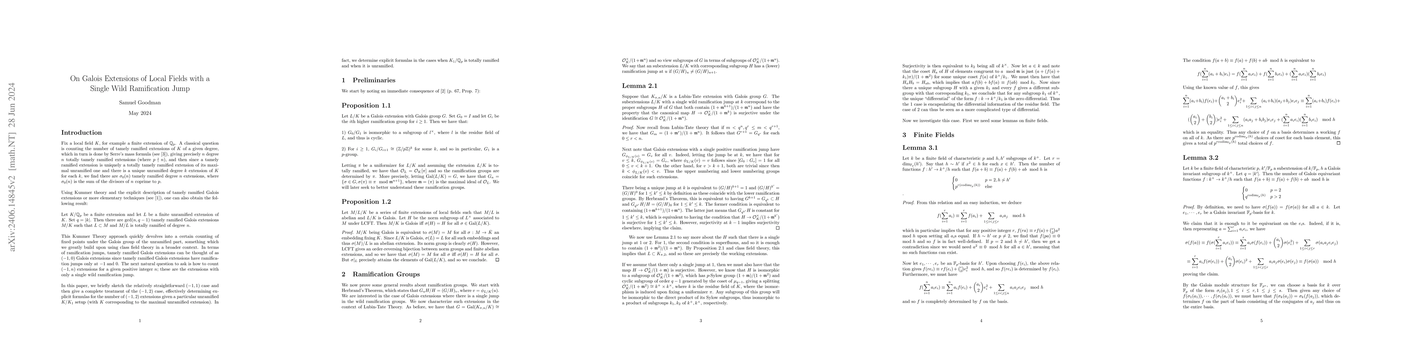 This paper determines the number of Galois extensions of local fields with a single wild ramification at 2, building on Serre's Mass Formula for tamely ramified cases. It provides explicit formulas for both totally ramified and unramified base extensions, showing that the count depends solely on the residue field extension.