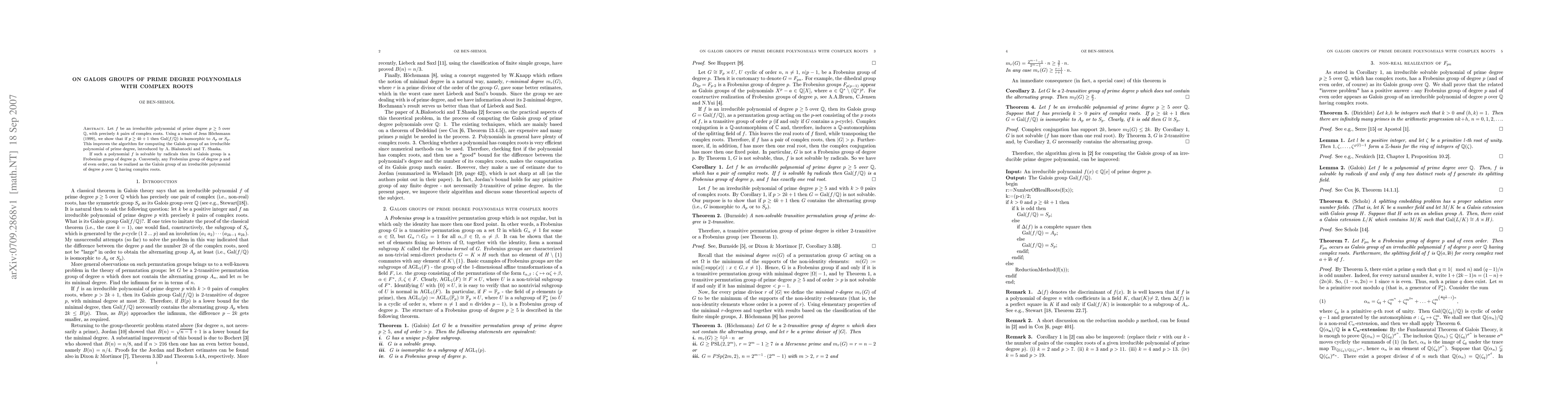 This paper demonstrates that for irreducible polynomials of prime degree $p \geq 5$ with $k$ pairs of complex roots, if $p \geq 4k+1$, then the Galois group is isomorphic to $A_p$ or $S_p$, enhancing existing algorithms for computing such groups. It also establishes that solvable polynomials of this form have a Frobenius group as their Galois group, and any even-order Frobenius group of degree $p$ can arise in this context.