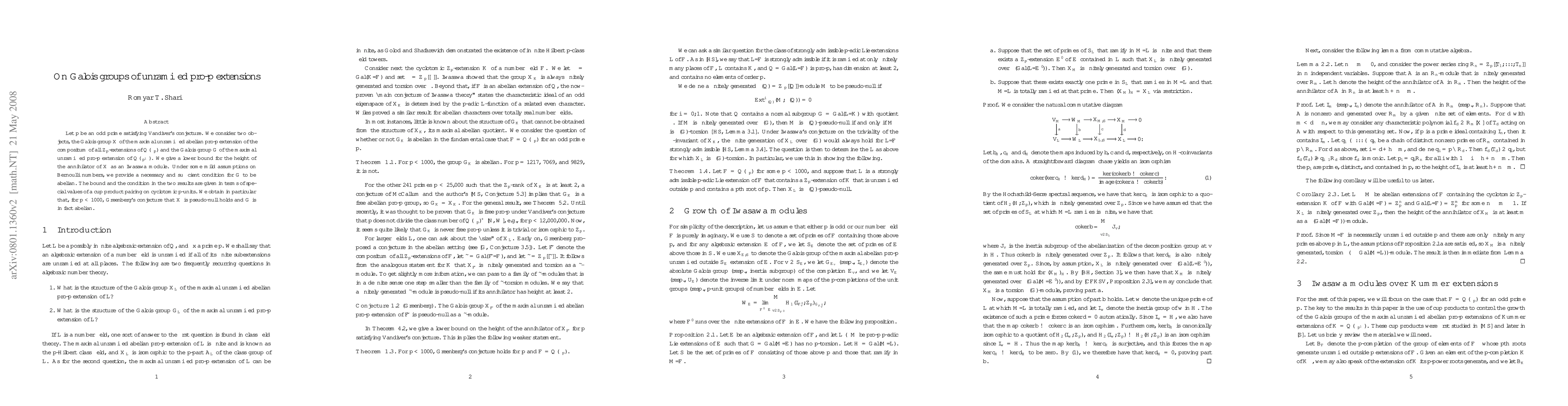 This paper investigates Galois groups related to unramified pro-p extensions, deriving a lower bound for the height of the annihilator of a specific Galois group and providing conditions for the abelian nature of another under Vandiver's conjecture. It concludes that for primes less than 1000, Greenberg's conjecture holds, and the latter Galois group is abelian.