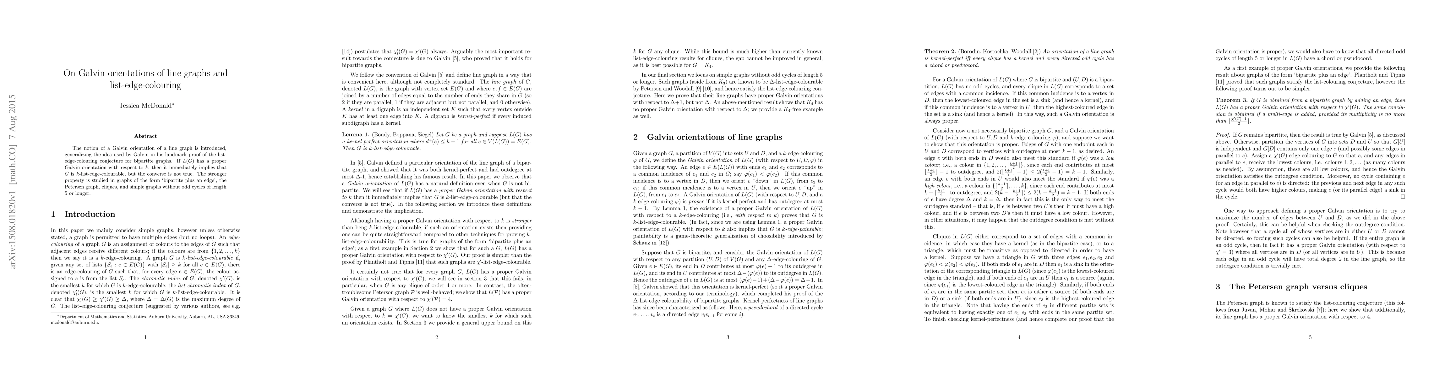 The notion of a Galvin orientation of a line graph is introduced, generalizing the idea used by Galvin in his landmark proof of the list-edge-colouring conjecture for bipartite graphs. If L(G) has a proper Galvin orientation with respect to k, then it immediately implies that G is k-list-edge-colourable, but the converse is not true. The stronger property is studied in graphs of the form `bipartite plus an edge', the Petersen graph, cliques, and simple graphs without odd cycles of length 5 or longer.