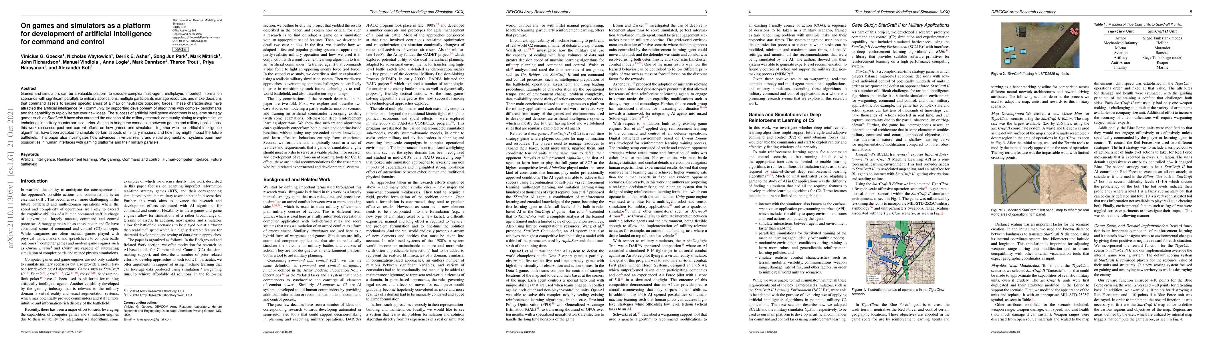 This paper explores the use of games and simulators as platforms for developing AI algorithms for command and control, emphasizing their parallels to military applications. It discusses past and current efforts in adapting these technologies to simulate military missions and highlights the potential impact on future battlefields, along with the emerging role of virtual reality in enhancing human-AI interfaces.