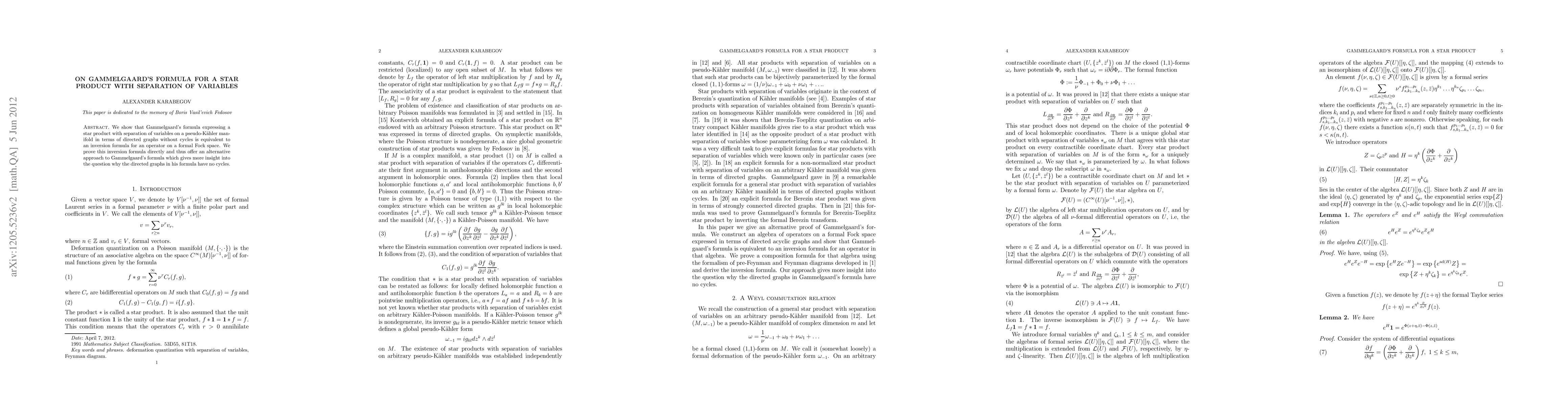 We show that Gammelgaard's formula expressing a star product with separation of variables on a pseudo-Kaehler manifold in terms of directed graphs without cycles is equivalent to an inversion formula for an operator on a formal Fock space. We prove this inversion formula directly and thus offer an alternative approach to Gammelgaard's formula which gives more insight into the question why the directed graphs in his formula have no cycles.