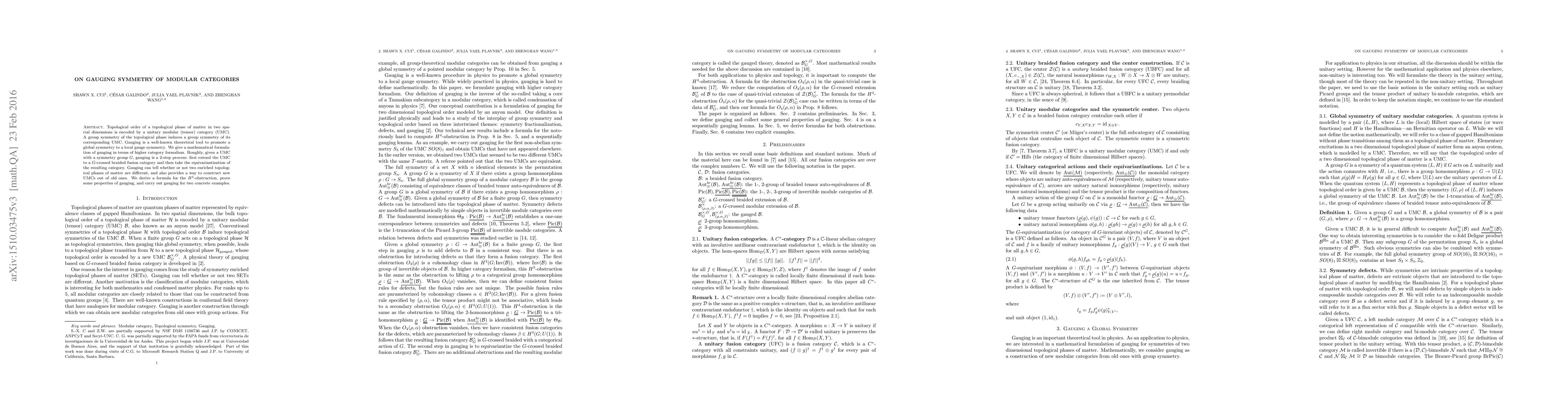 This paper mathematically formulates the process of gauging symmetry in modular categories to study topological phases of matter. It introduces a higher category formalism to extend and equivariantize unitary modular categories, providing a method to distinguish between topological phases and construct new categories.