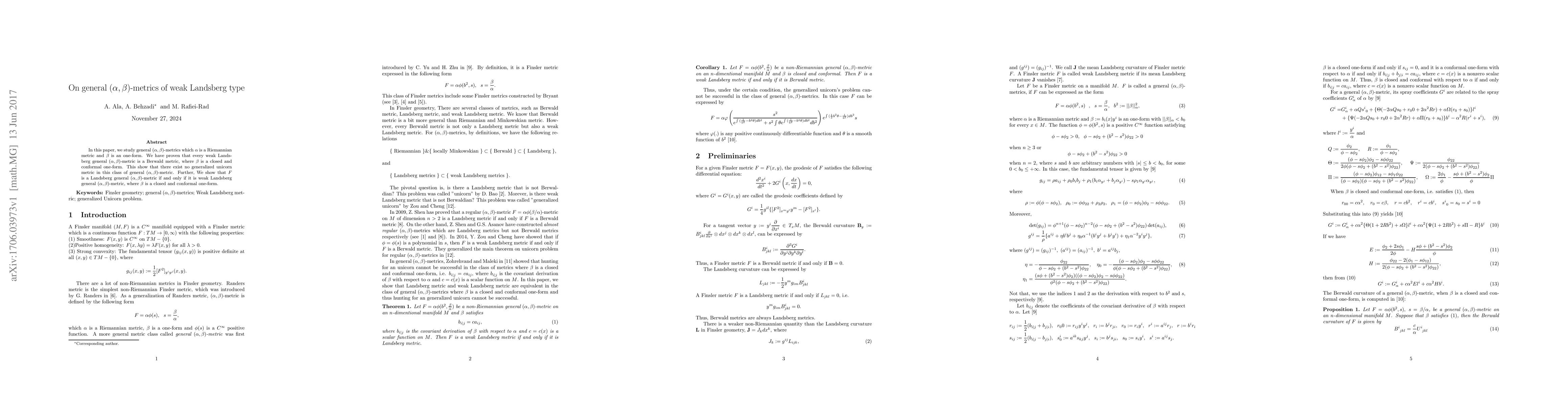 In this paper, we study general $(\alpha,\beta)$-metrics which $\alpha$ is a Riemannian metric and $\beta$ is an one-form. We have proven that every weak Landsberg general $(\alpha,\beta)$-metric is a Berwald metric, where $\beta$ is a closed and conformal one-form. This show that there exist no generalized unicorn metric in this class of general $(\alpha,\beta)$-metric. Further, We show that $F$ is a Landsberg general $(\alpha,\beta)$-metric if and only if it is weak Landsberg general $(\alpha,\beta)$-metric, where $\beta$ is a closed and conformal one-form.