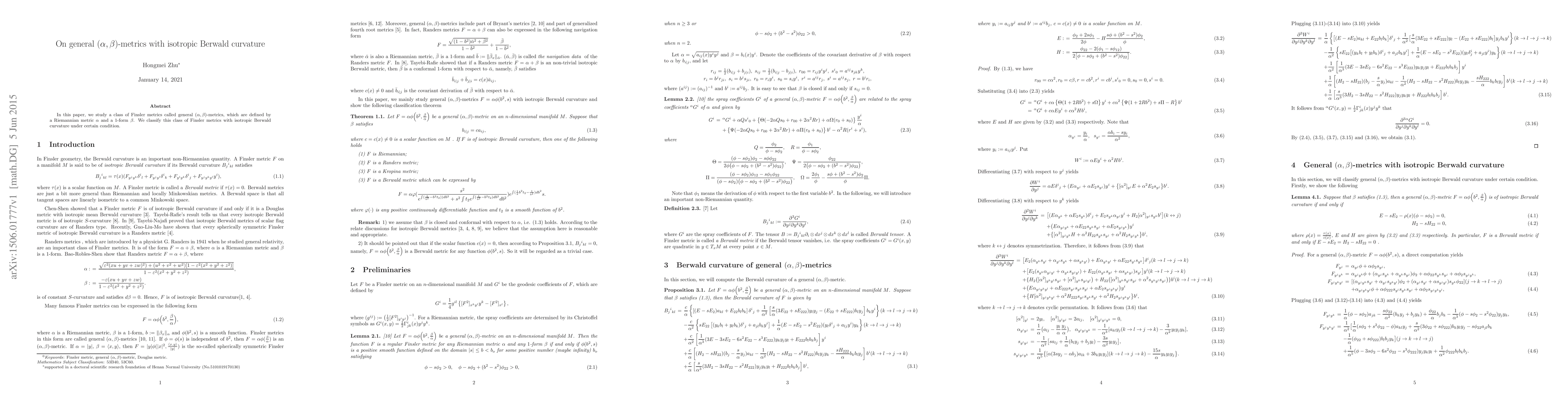 This paper classifies general $(\alpha,\beta)$-metrics, a class of Finsler metrics defined by a Riemannian metric and a $1$-form, that exhibit isotropic Berwald curvature under specified conditions. The study focuses on the geometric properties of these metrics.