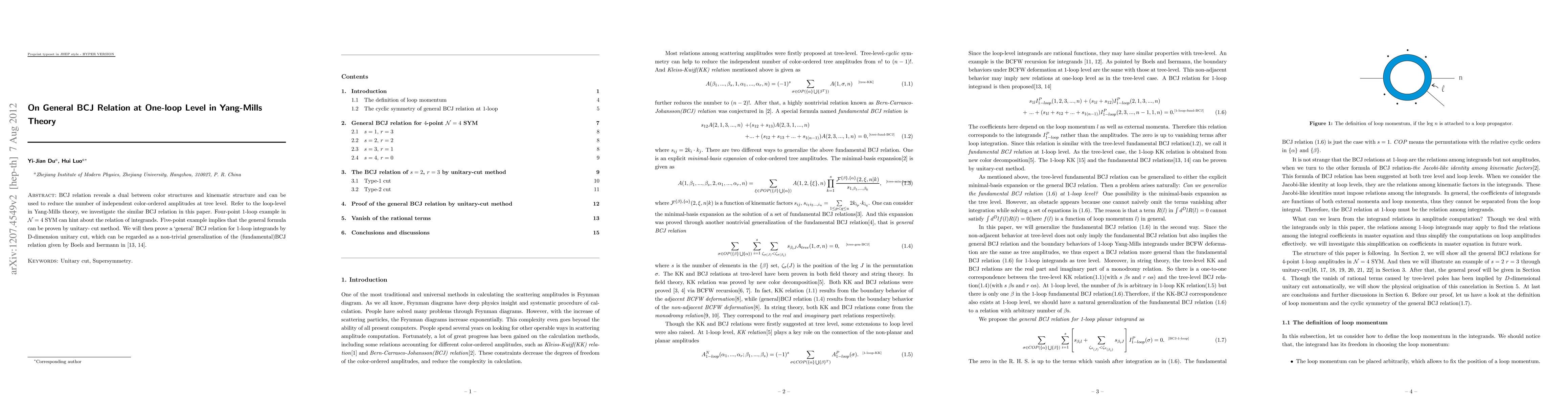 This paper investigates the generalization of the BCJ relation to one-loop level in Yang-Mills theory, proving a 'general' BCJ relation for 1-loop integrands via the D-dimension unitary cut method. It extends the fundamental BCJ relation from tree level to loop level, providing a new tool for simplifying calculations in N=4 SYM.