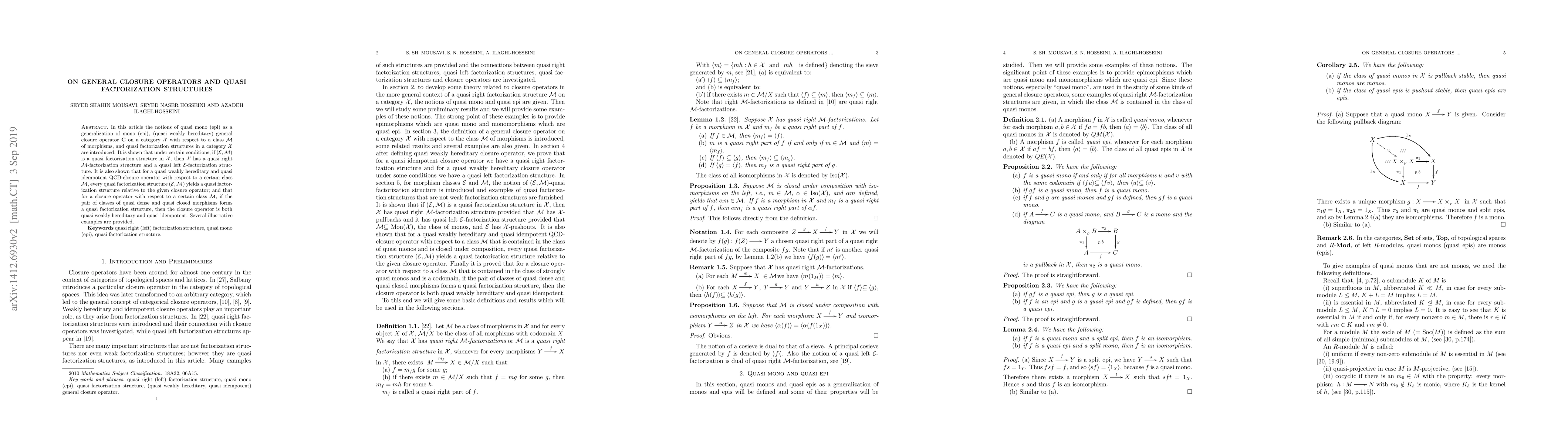 This paper introduces the concepts of general closure operators and quasi factorization structures in a category, demonstrating how certain conditions lead to the emergence of quasi factorization structures and quasi closure operators. It concludes with examples illustrating these theoretical constructs.