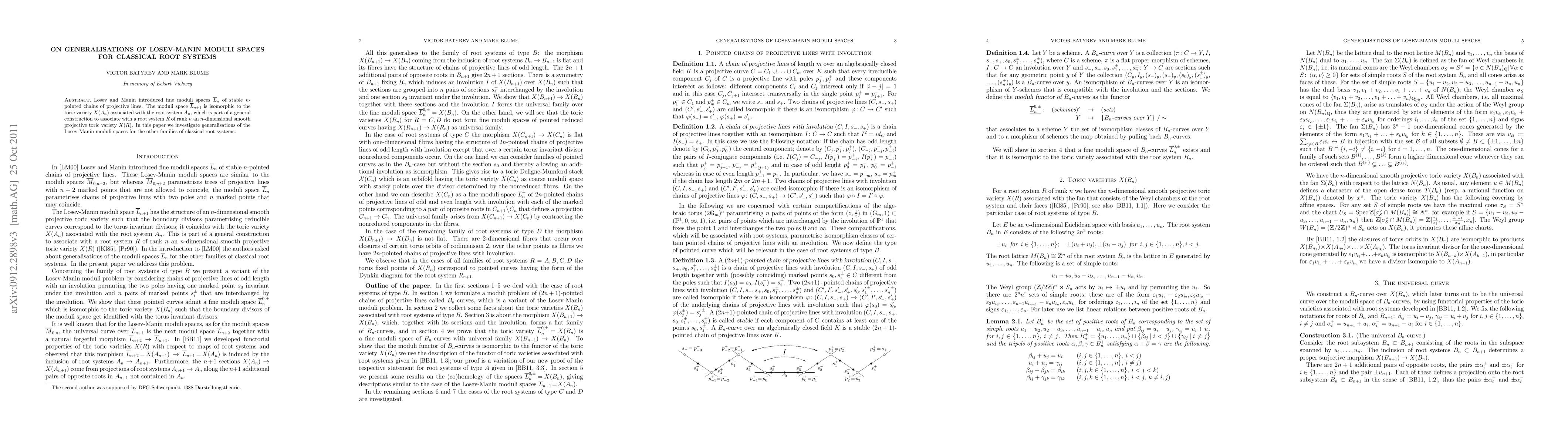 This paper explores generalisations of Losev-Manin moduli spaces, which originally associated smooth projective toric varieties with root systems of type $A_n$, to other classical root systems, aiming to construct similar spaces for root systems of types $B_n$, $C_n$, and $D_n$.