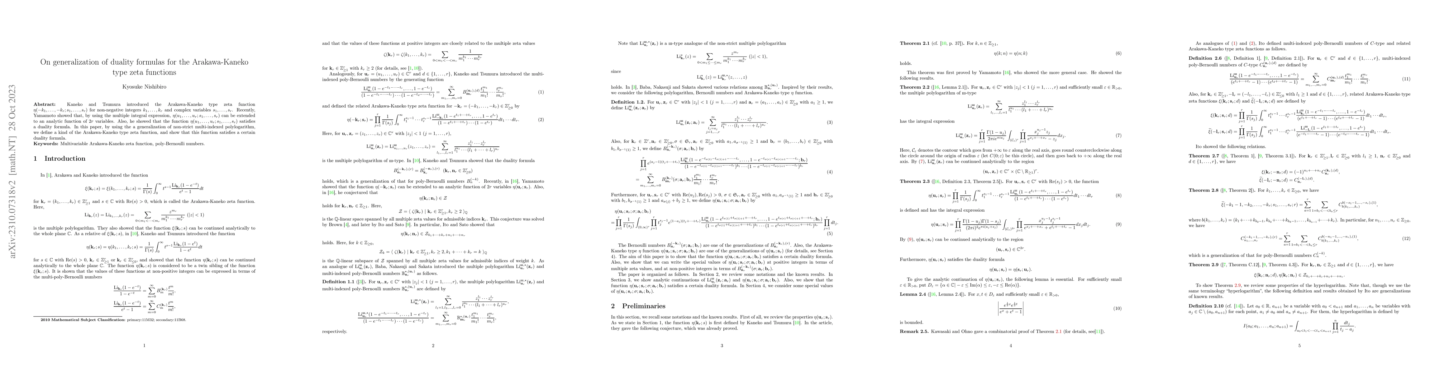 This paper generalizes duality formulas for the Arakawa-Kaneko type zeta functions by defining a new function using a generalized non-strict multi-indexed polylogarithm and proving its satisfaction of a specific duality formula.