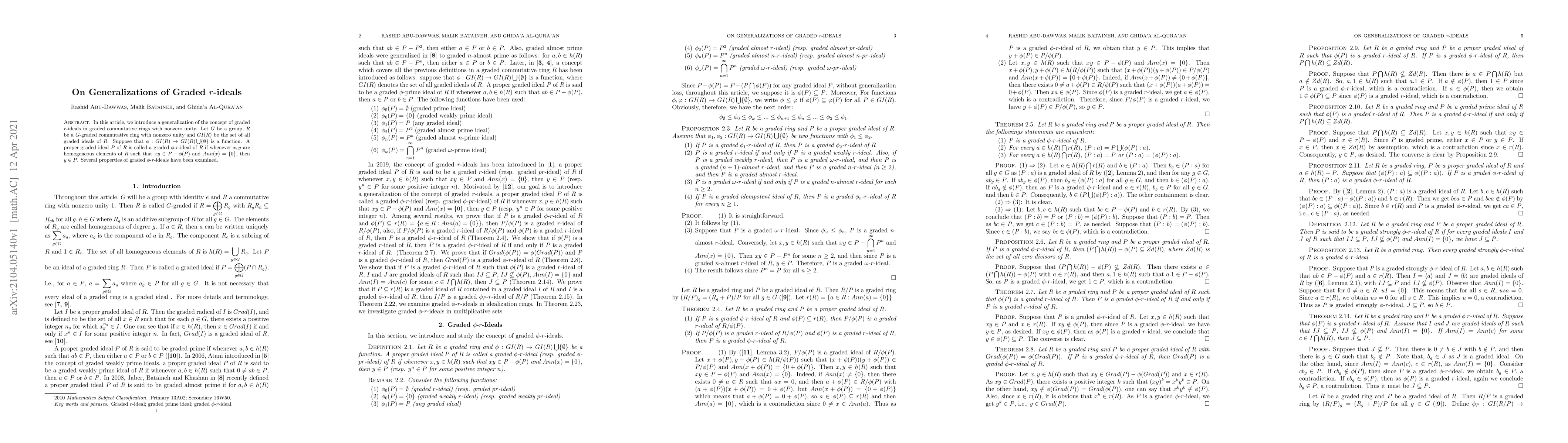 Researchers introduce a generalization of graded r-ideals in G-graded commutative rings, focusing on properties of graded φ-r-ideals that provide new insights into ideal structures.