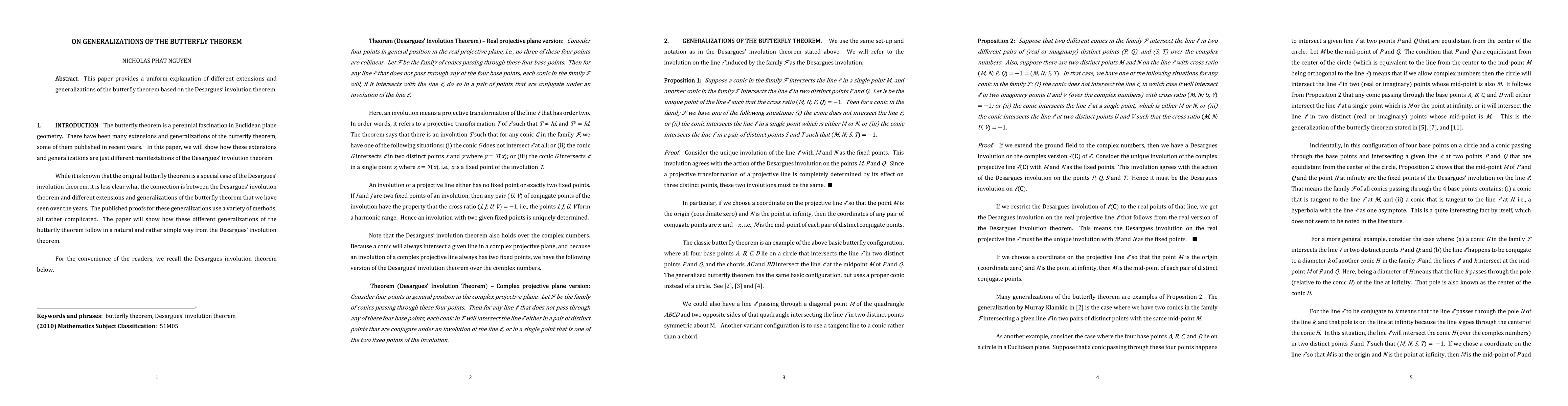 This paper provides a uniform explanation of different extensions and generalizations of the butterfly theorem based on the Desargues involution theorem.