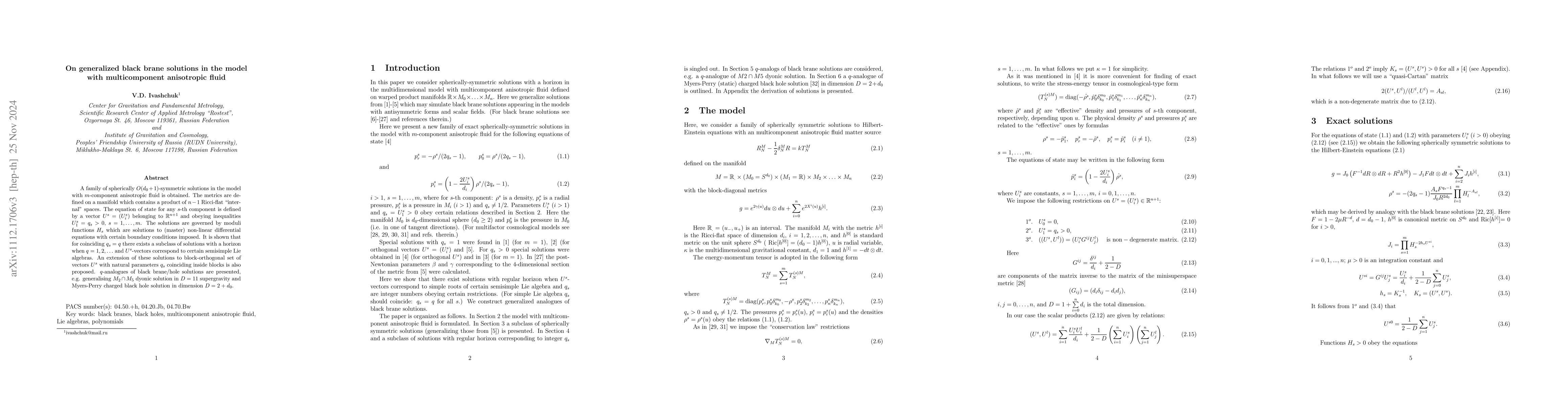 A family of spherically symmetric solutions in the model with m-component anisotropic fluid is considered. The metrics are defined on a manifold which contains a product of n-1 Ricci-flat "internal" spaces. The equation of state for any s-th component is defined by a vector U^s = (U^s_i) belonging to R^{n + 1} and obeying inequalities U^s_1 = q_s > 0, s = 1,..., m. The solutions are governed by moduli functions H_s which are solutions of (master) non-linear differential equations with certain boundary conditions imposed. It is shown that for coinciding q_s = q there exists a subclass of solutions with regular horizon when q = 1, 2, ... and U^s-vectors correspond to certain semisimple Lie algebras. An extension of these solutions to block-orthogonal set of vectors U^s with natural parameters q_s coinciding inside blocks is also proposed. Generalized q-analogues of black brane solutions are suggested and q-analogue of M_2-M_5 dyonic solution in D =11 supergravity (corresponding to the Lie algebra A_2) is considered.