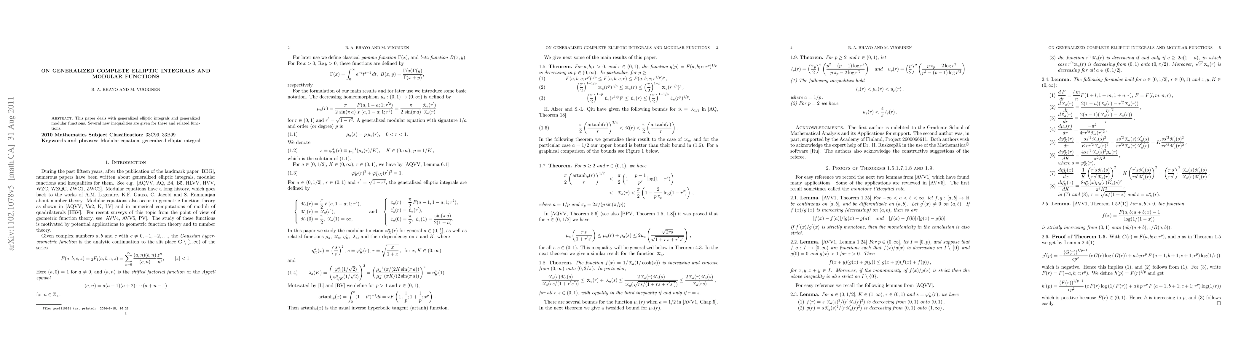 Summary: This paper explores generalized complete elliptic integrals and modular functions, presenting several new inequalities for these and related functions, contributing to the mathematical understanding of these complex areas.