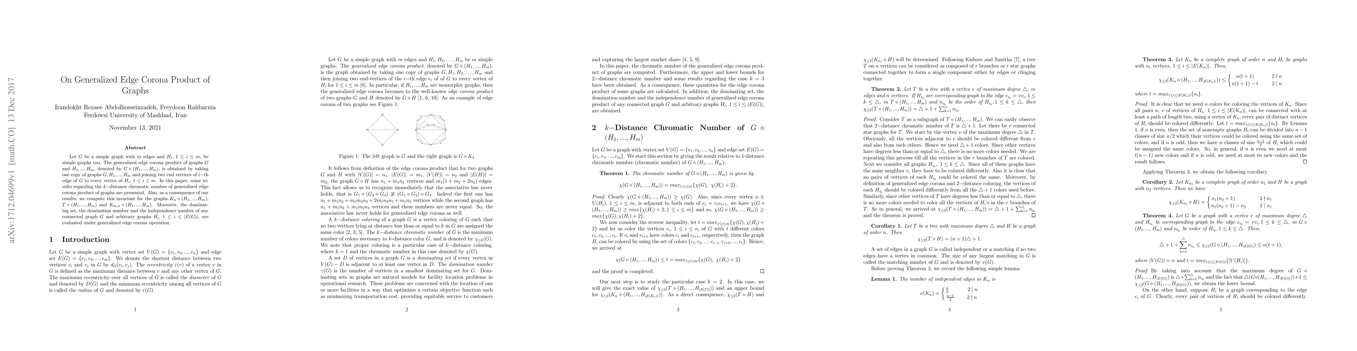This paper explores the generalized edge corona product of graphs, presenting results on their $k$-distance chromatic number, and evaluates specific cases including $K_n$, $T$, and $K_{m,n}$ graphs. Additionally, it examines domination sets, domination numbers, and independence numbers under this product.