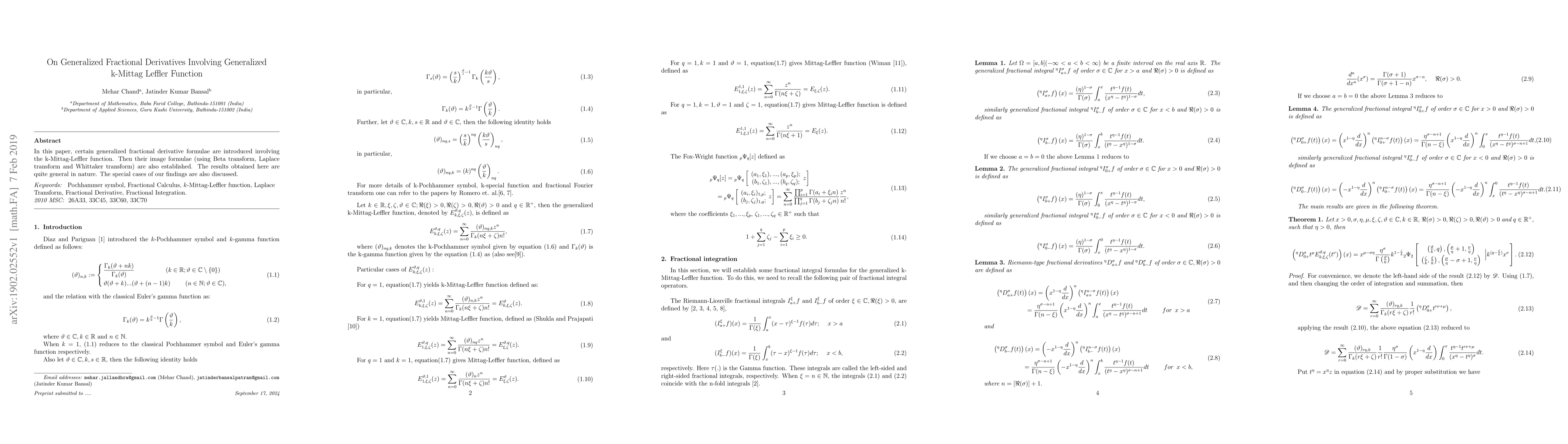 This paper introduces generalized fractional derivative formulae involving the k-Mittag-Leffler function and establishes their image formulae using various transforms, providing general results with special case discussions.
