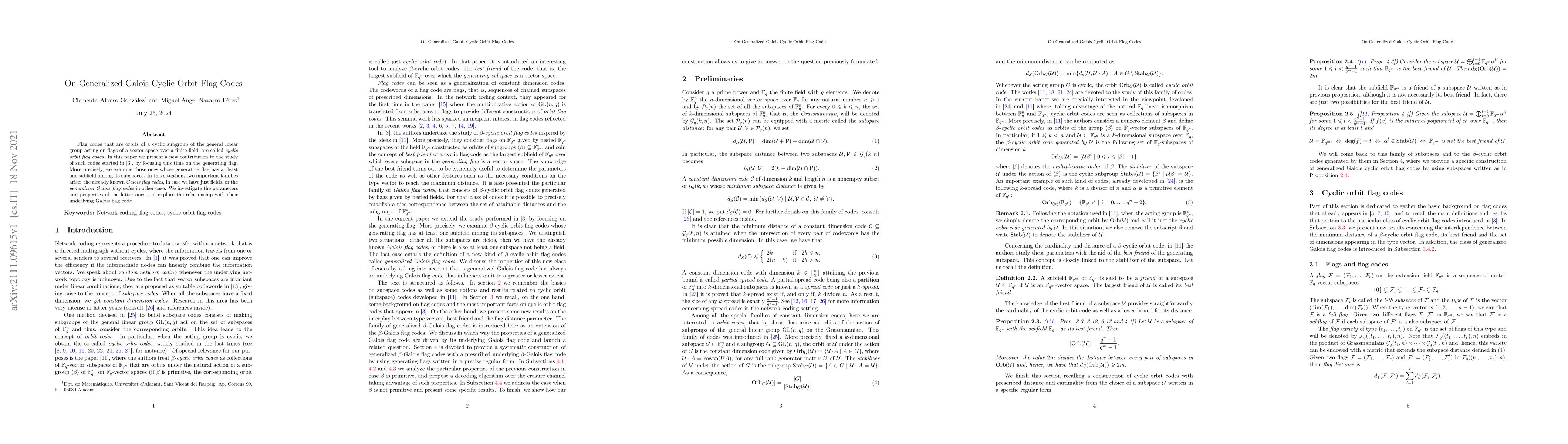 Flag codes that are orbits of a cyclic subgroup of the general linear group acting on flags of a vector space over a finite field, are called cyclic orbit flag codes. In this paper we present a new contribution to the study of such codes started in arXiv:2102.00867, by focusing this time on the generating flag. More precisely, we examine those ones whose generating flag has at least one subfield among its subspaces. In this situation, two important families arise: the already known Galois flag codes, in case we have just fields, or the generalized Galois flag codes in other case. We investigate the parameters and properties of the latter ones and explore the relationship with their underlying Galois flag code.