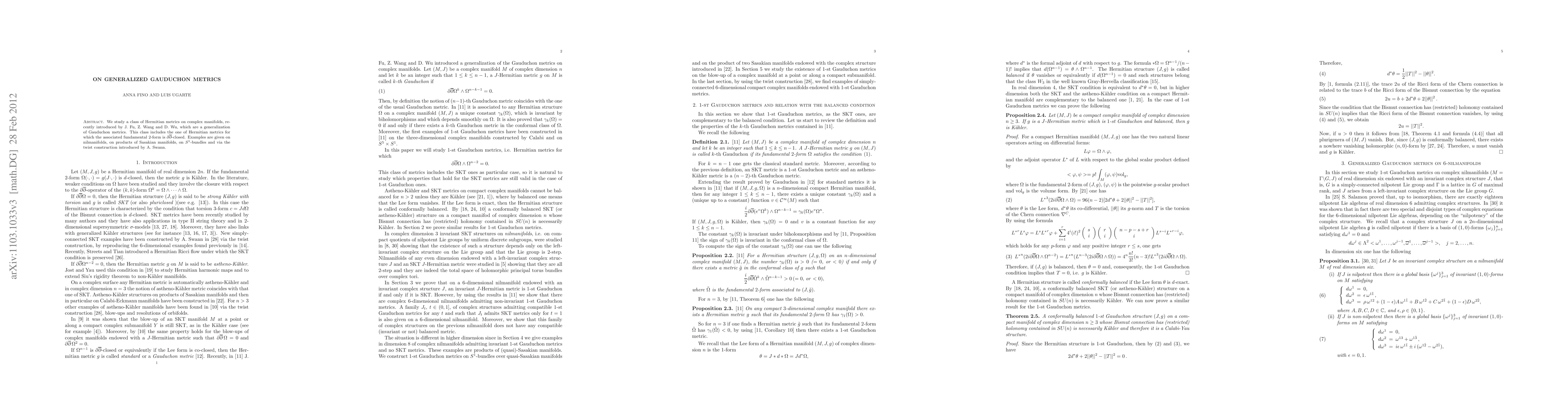 Researchers study a class of Hermitian metrics on complex manifolds that generalize Gauduchon metrics, exploring their properties and applications in various geometric settings.