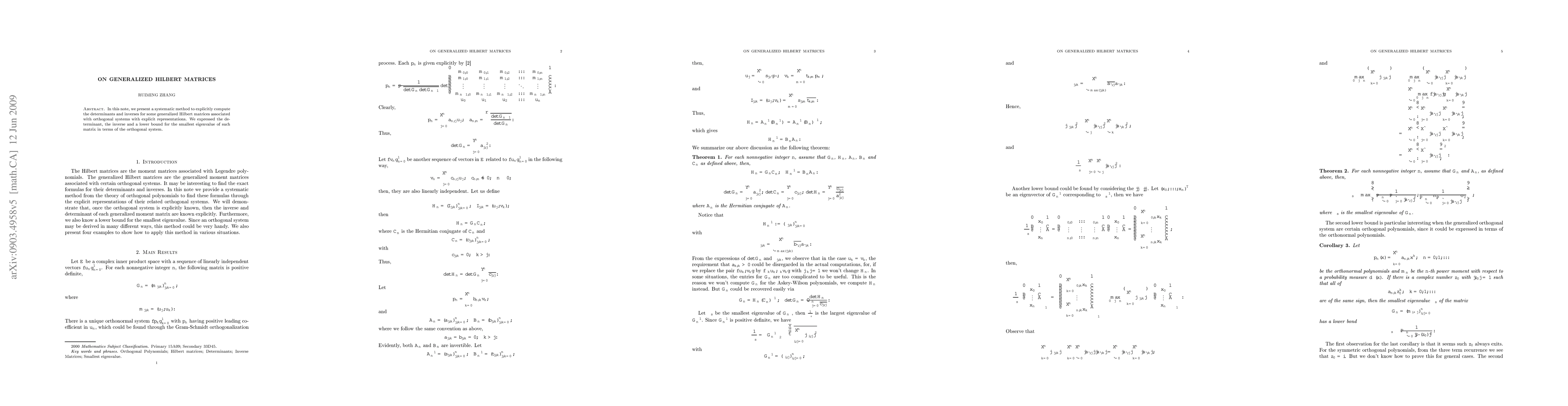 In this note, we present a systematic method to explicitly compute the determinants and inverses for some generalized Hilbert matrices associated with orthogonal systems with explicit representations. We expressed the determinant, the inverse and a lower bound for the smallest eigenvalue of such matrix in terms of the explicit orthogonal system.