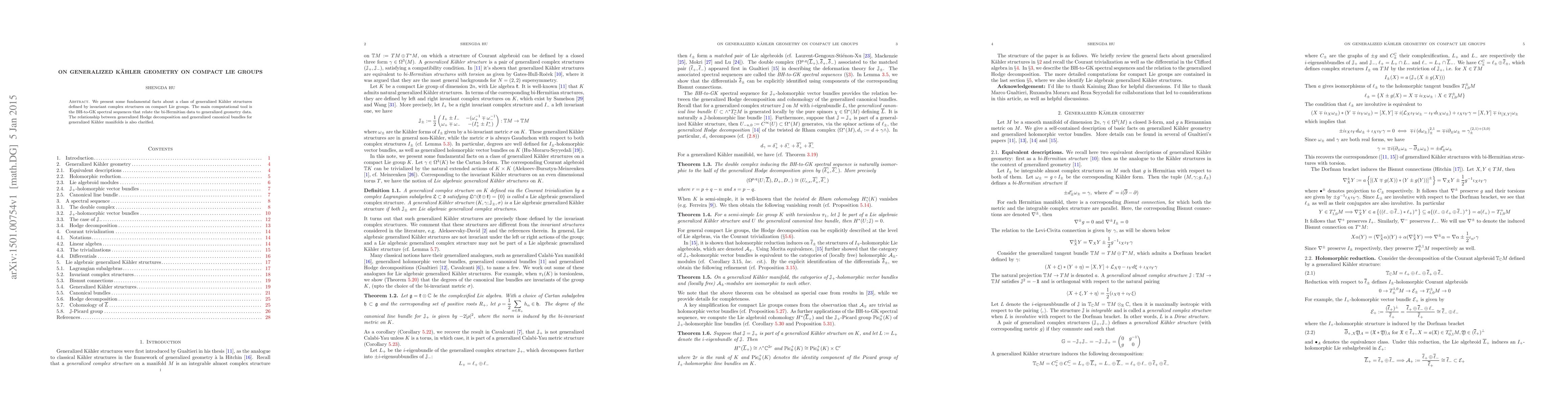 This paper explores generalized Kähler structures on compact Lie groups through invariant complex structures, utilizing BH-to-GK spectral sequences for computation. It also clarifies the link between generalized Hodge decomposition and generalized canonical bundles.