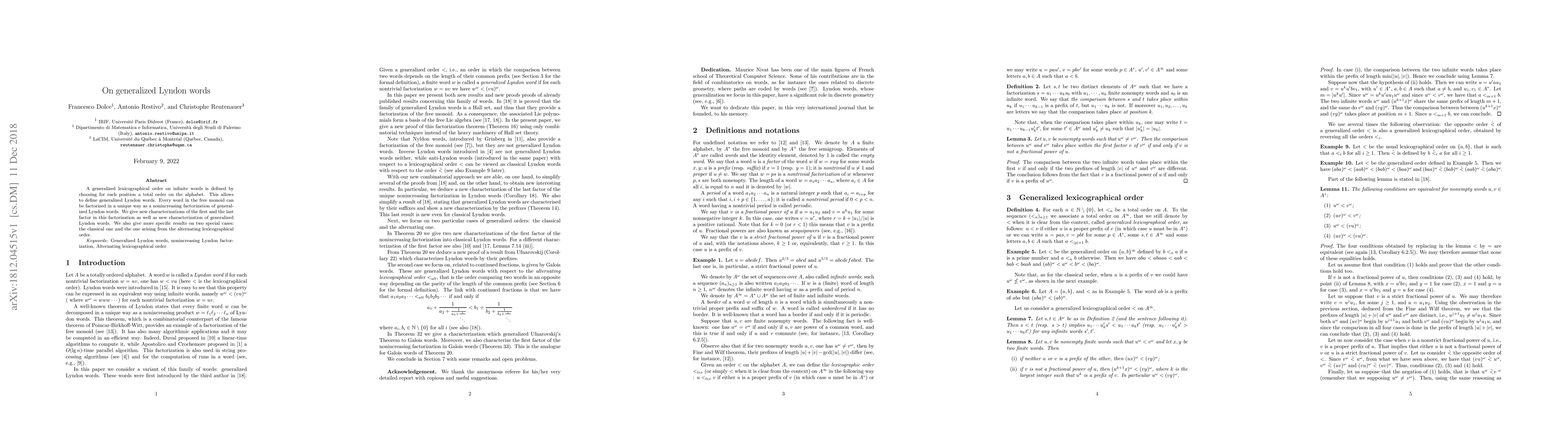 This paper introduces a generalized lexicographical order on infinite words using alphabetic total orders at each position, defining generalized Lyndon words. It presents unique factorization of words into nonincreasing sequences of these generalized Lyndon words and provides new characterizations for the first and last factors in this factorization.