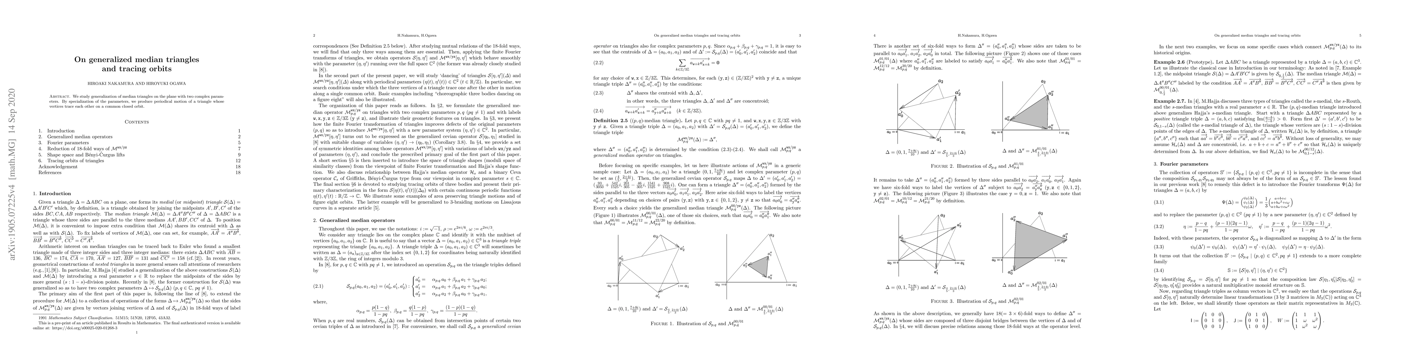 Summary: This paper explores generalized median triangles with two complex parameters, revealing that their specialization leads to periodic motion of the triangle's vertices tracing a common closed orbit.