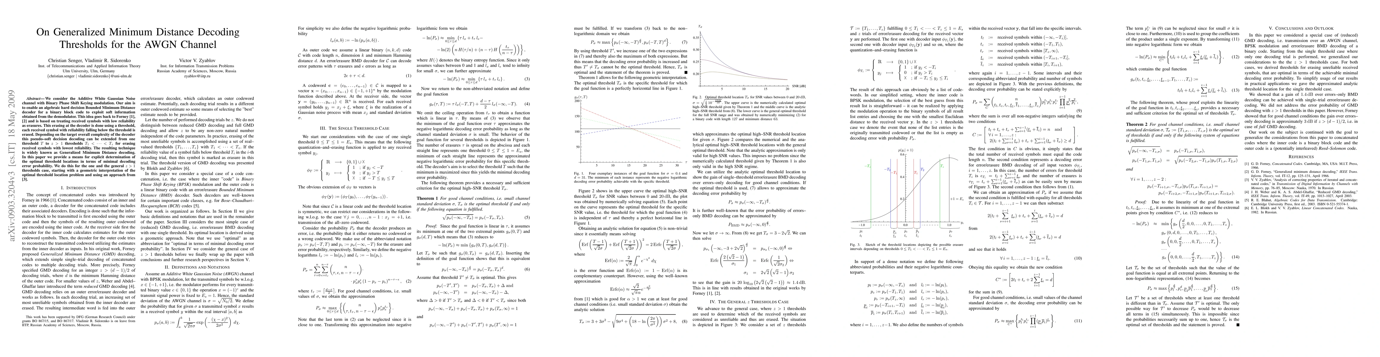 This paper explores Generalized Minimum Distance decoding for Binary Phase Shift Keying on the AWGN channel, proposing a method to determine optimal threshold locations to minimize decoding error probability. It uses a geometric interpretation and extends the approach to multiple thresholds for improved performance.